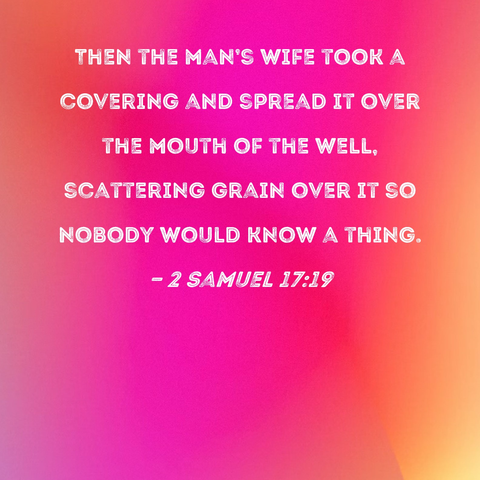 2 Samuel 17:19 Then the man's wife took a covering and spread it over the mouth of the well, scattering grain over it so nobody would know a thing.