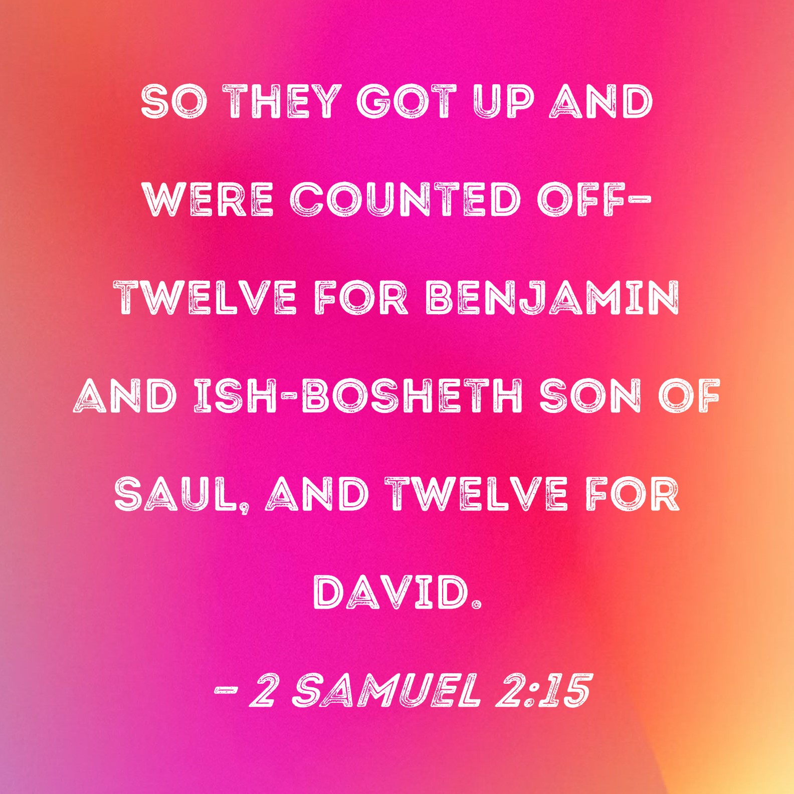 2 Samuel 2:15 So they got up and were counted off--twelve for Benjamin and Ish-bosheth son of Saul, and twelve for David.