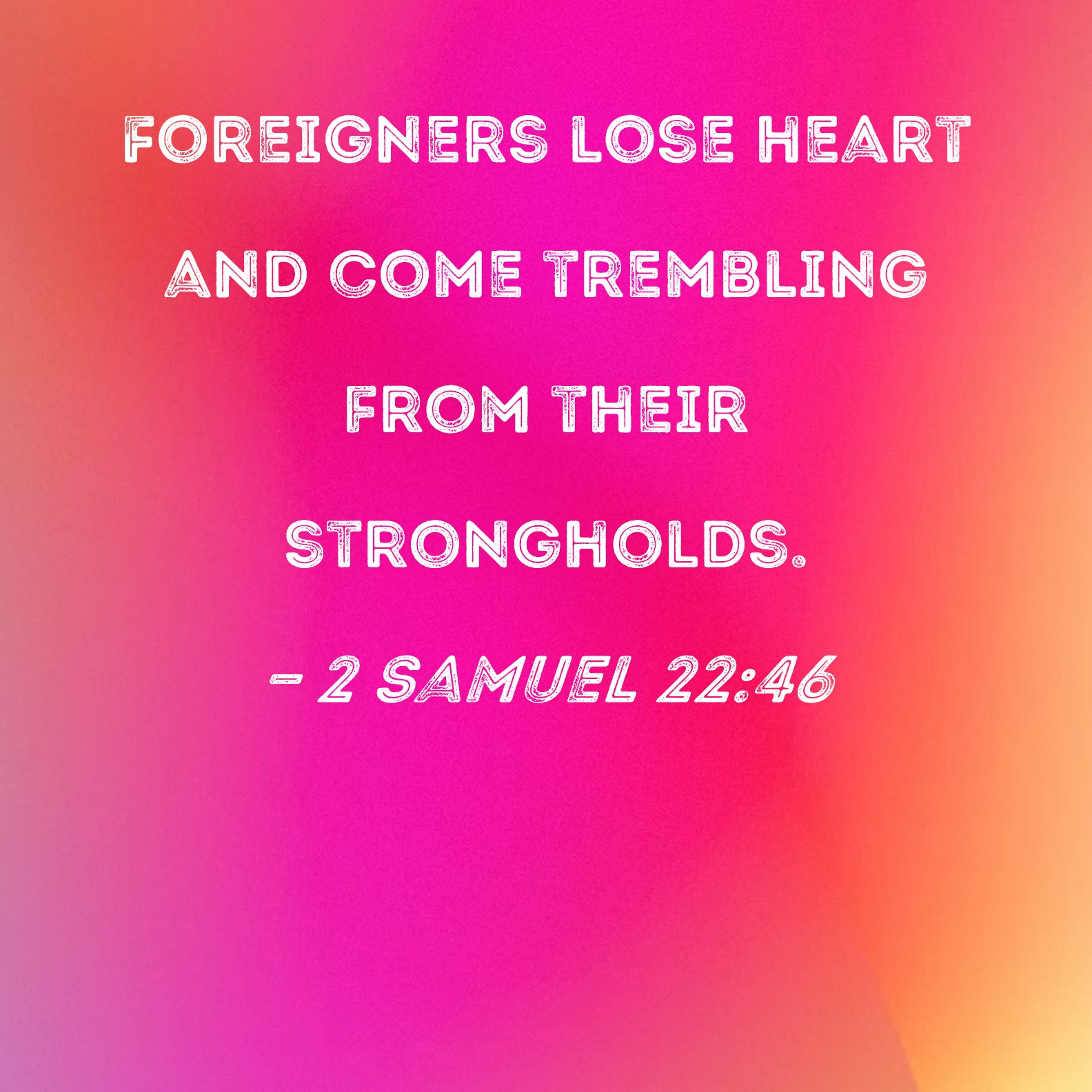 2 Samuel 22:46 Foreigners lose heart and come trembling from their strongholds.