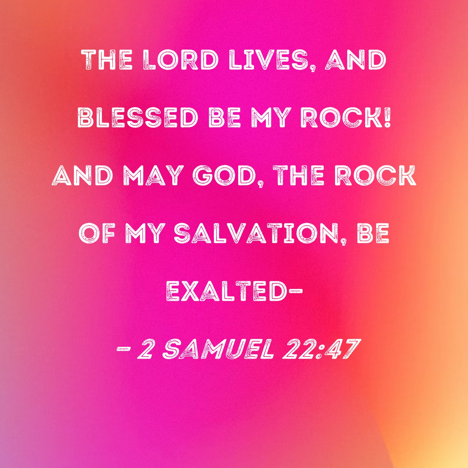 2 Samuel 22:47 The LORD lives, and blessed be my Rock! And may God, the Rock of my salvation, be exalted--