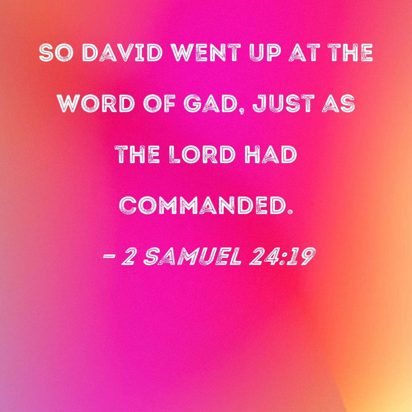 2 Samuel 24:19 So David went up at the word of Gad, just as the LORD had commanded.