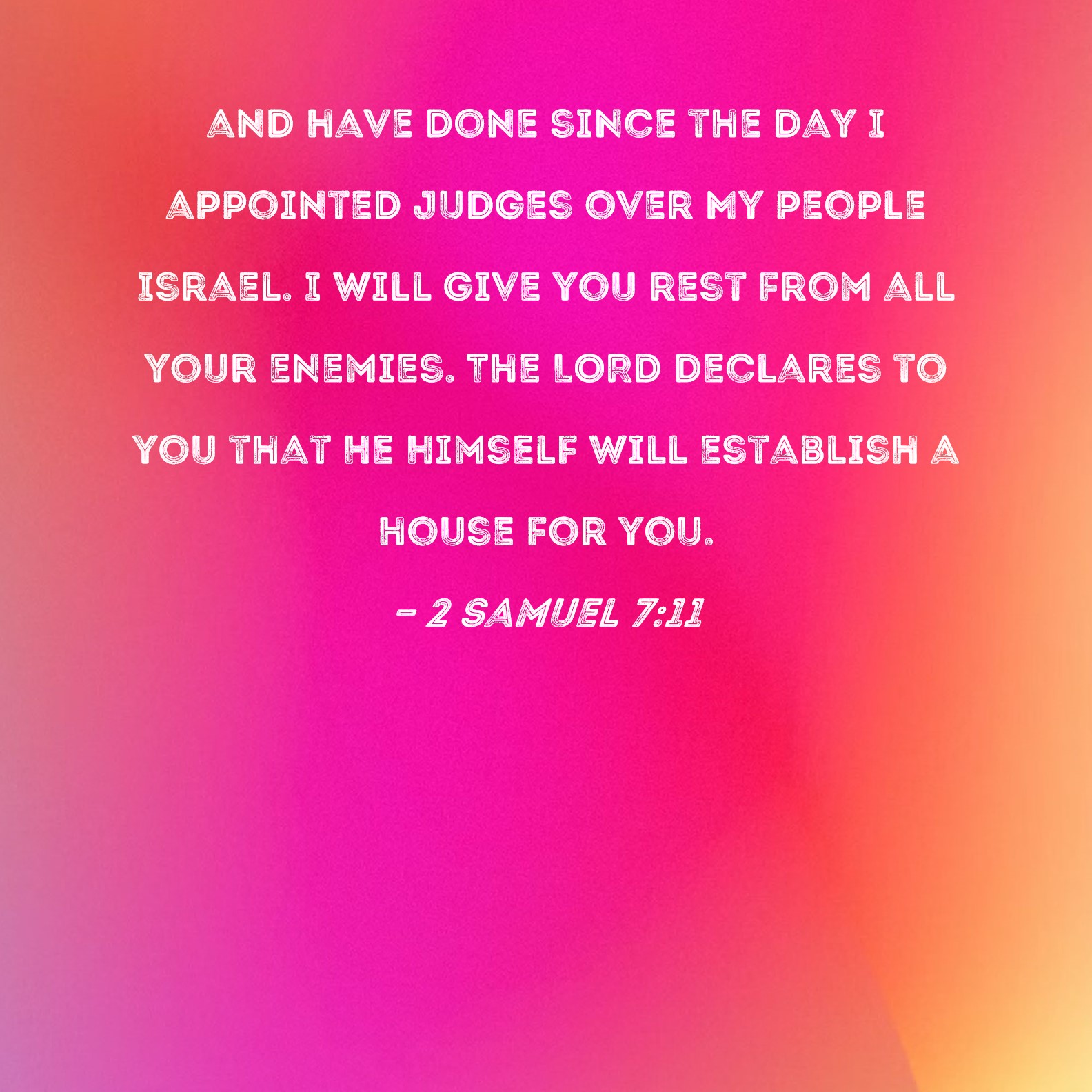 2 Samuel 7:11 and have done since the day I appointed judges over My people Israel. I will give you rest from all your enemies. The LORD declares to you that He Himself will establish a house for you.