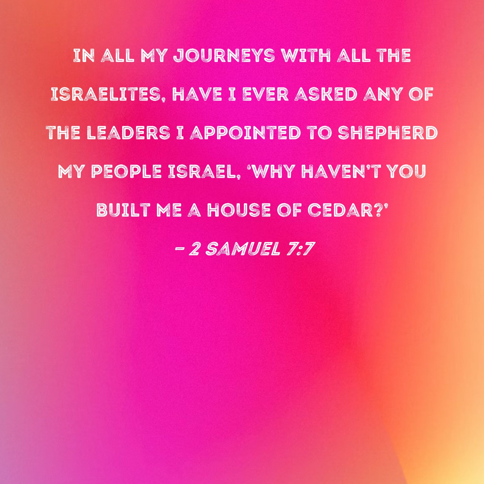 2 Samuel 7:7 In all My journeys with all the Israelites, have I ever asked any of the leaders I appointed to shepherd My people Israel, 'Why haven't you built Me a house of cedar?'