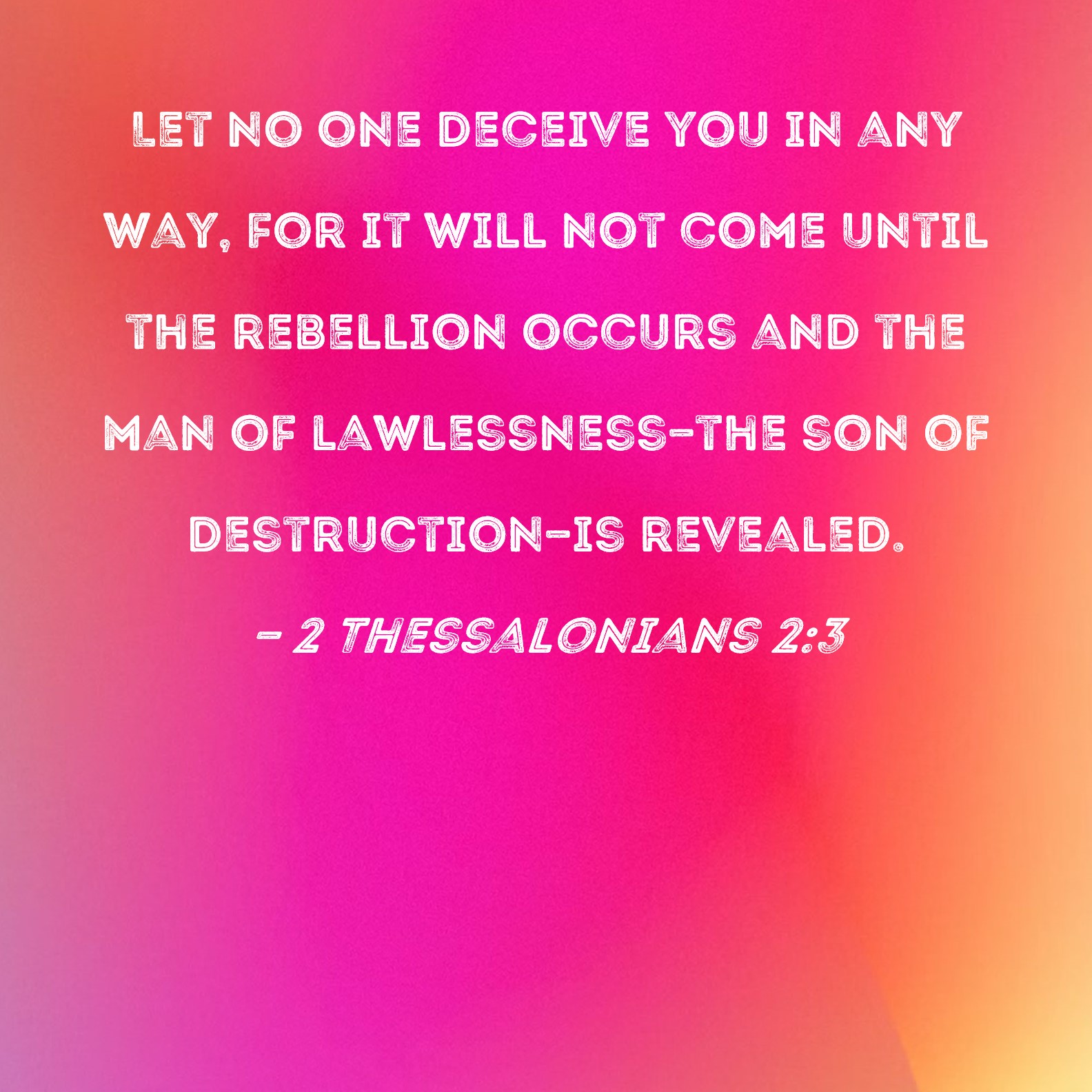 2 Thessalonians 2:3 Let no one deceive you in any way, for it will not come until the rebellion occurs and the man of lawlessness--the son of destruction--is revealed.