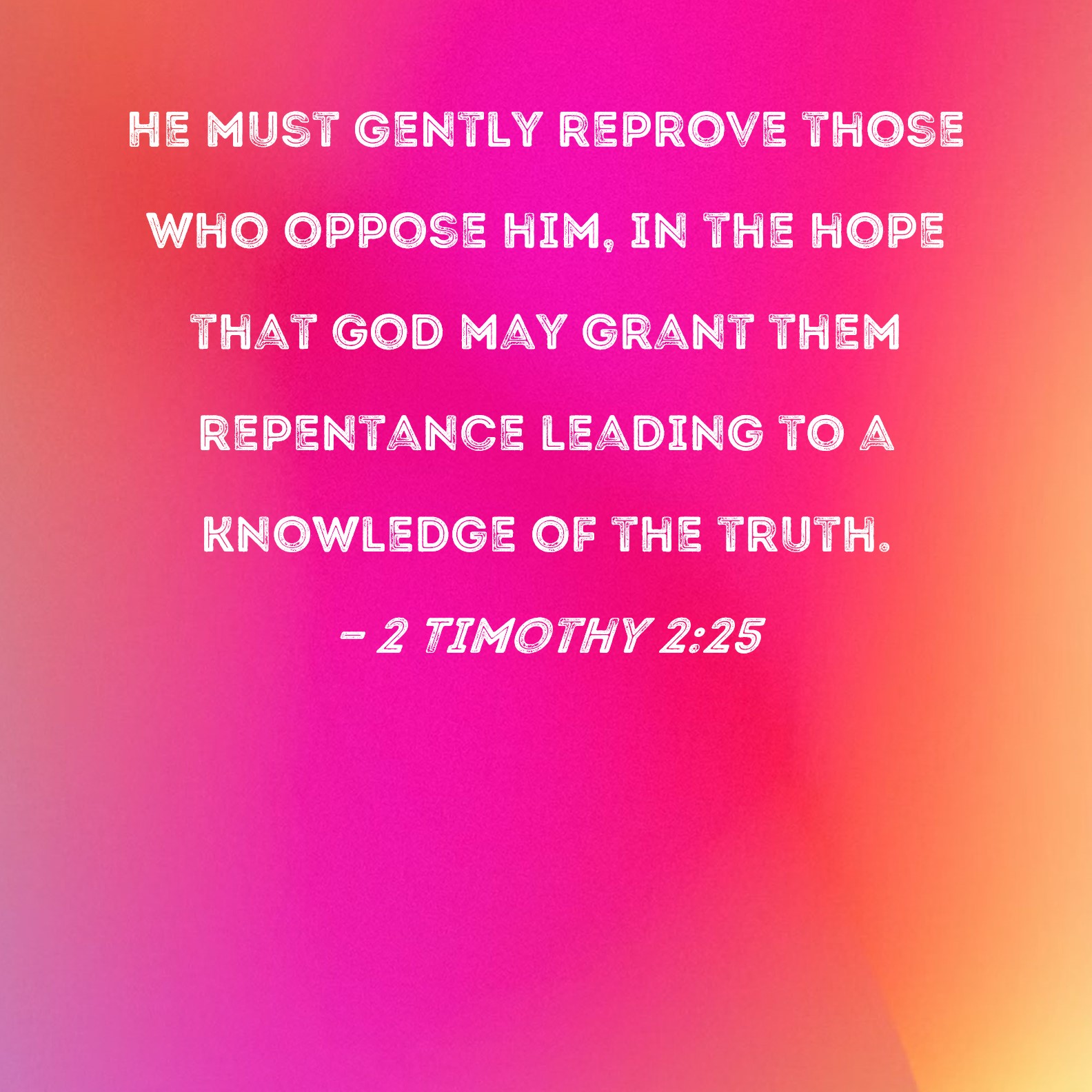 2 Timothy 2:25 He must gently reprove those who oppose him, in the hope that God may grant them repentance leading to a knowledge of the truth.