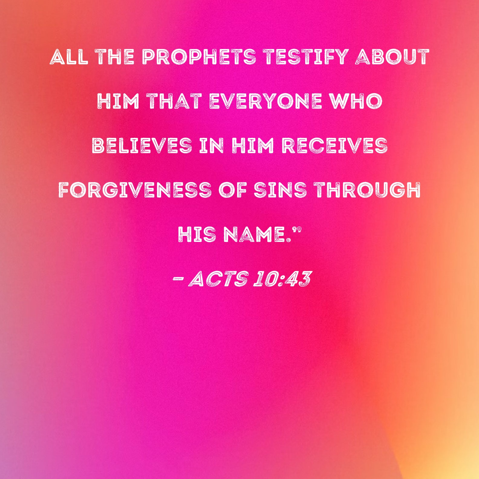 Acts 10:43 All the prophets testify about Him that everyone who believes in Him receives forgiveness of sins through His name."