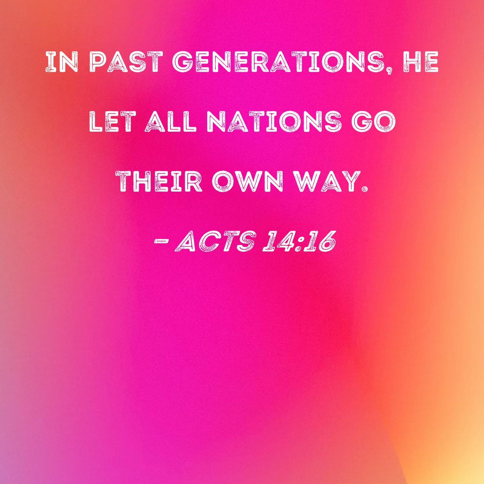 Acts 14:16 In past generations, He let all nations go their own way.