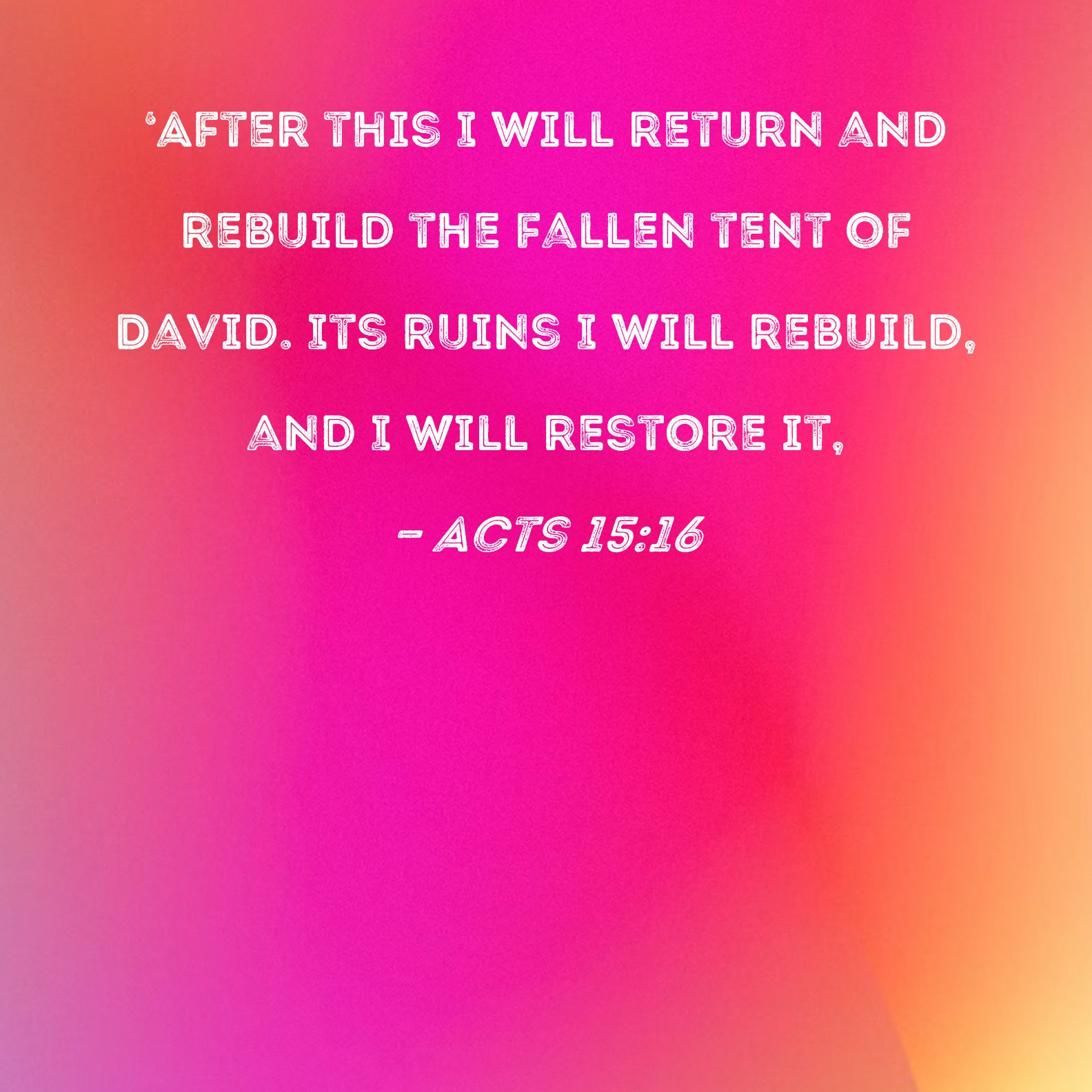 Acts 15:16 After this I will return and rebuild the fallen tent of David. Its ruins I will rebuild, and I will restore it,