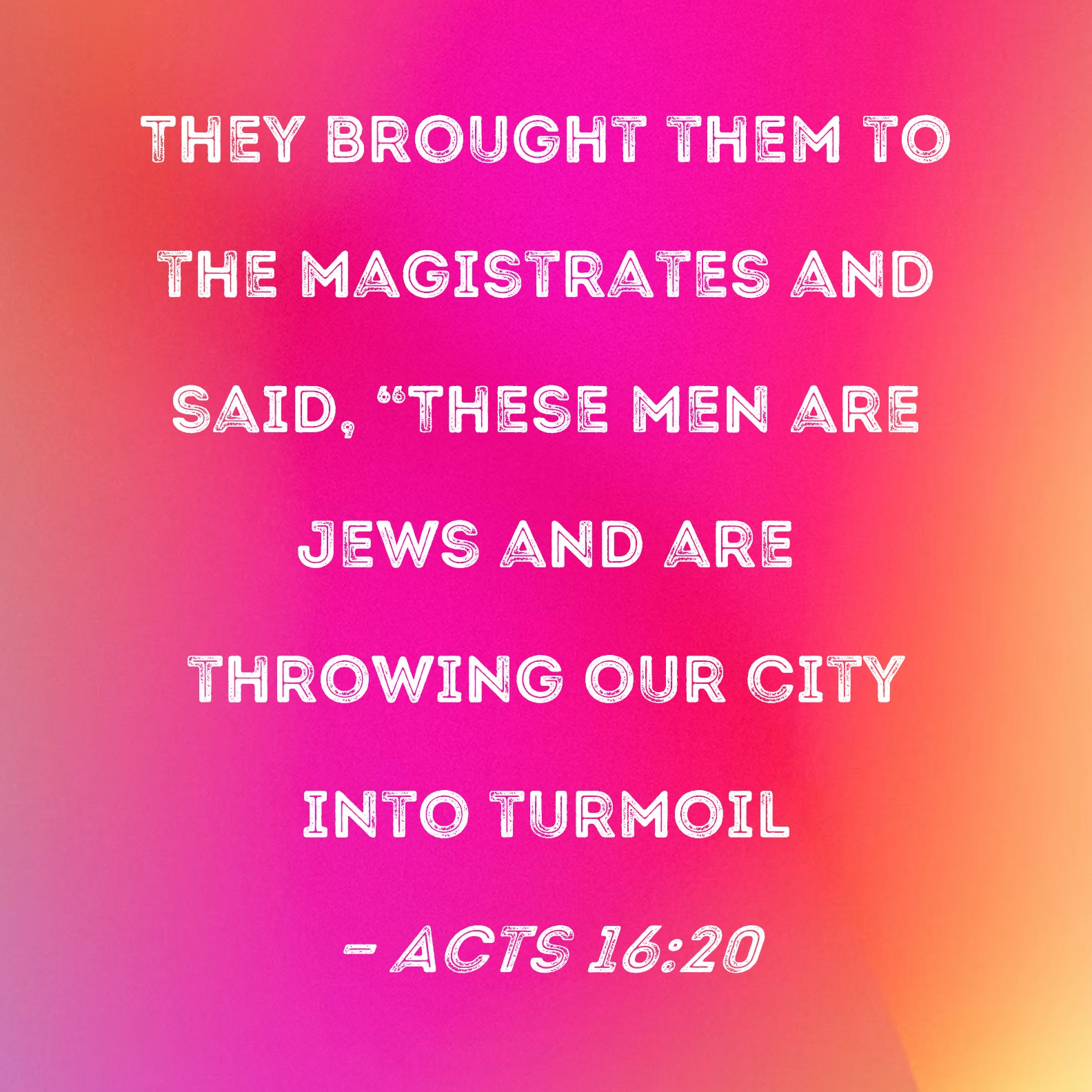 Acts 16:20 They brought them to the magistrates and said, "These men are Jews and are throwing our city into turmoil
