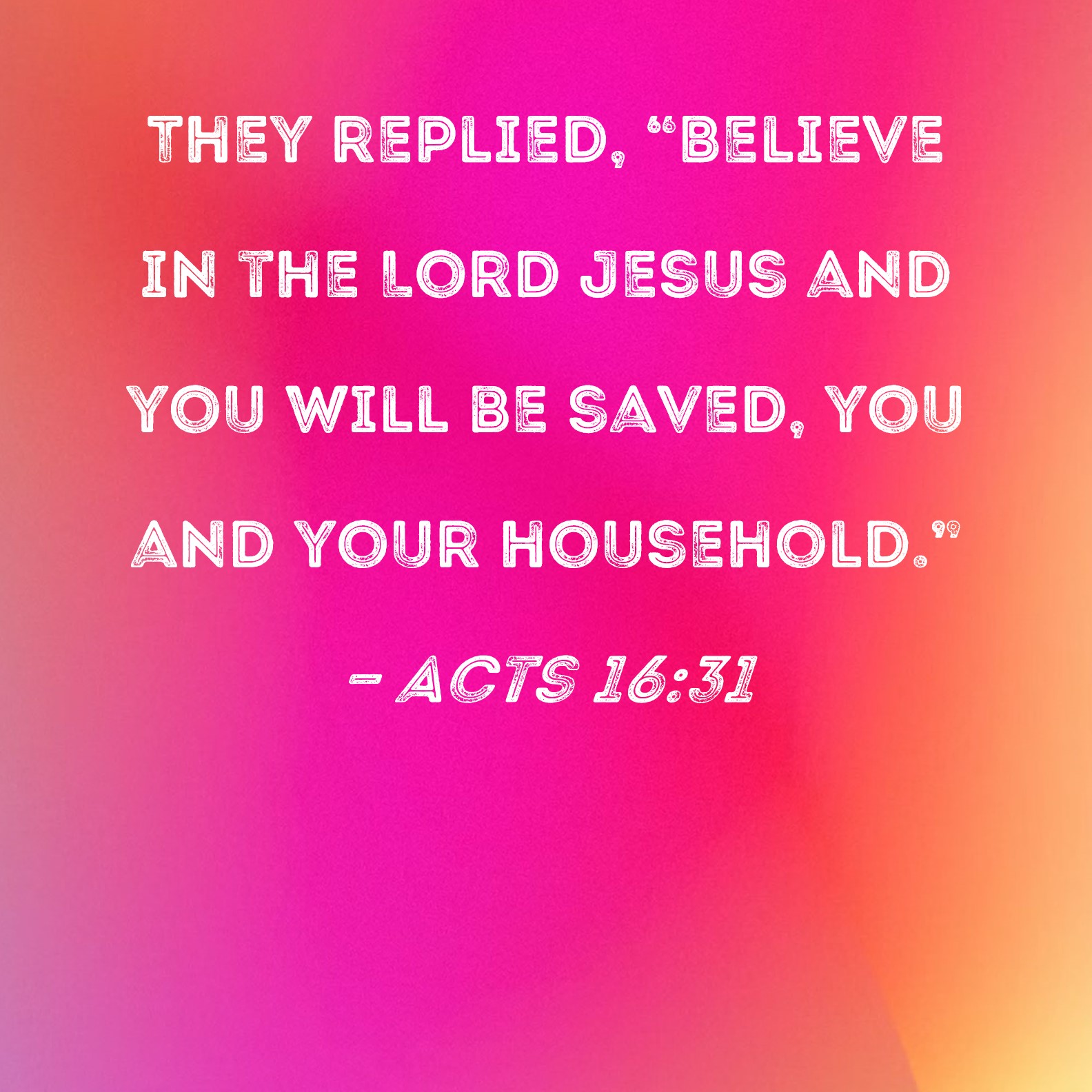 Acts 16:31 They replied, "Believe in the Lord Jesus and you will be saved, you and your household."