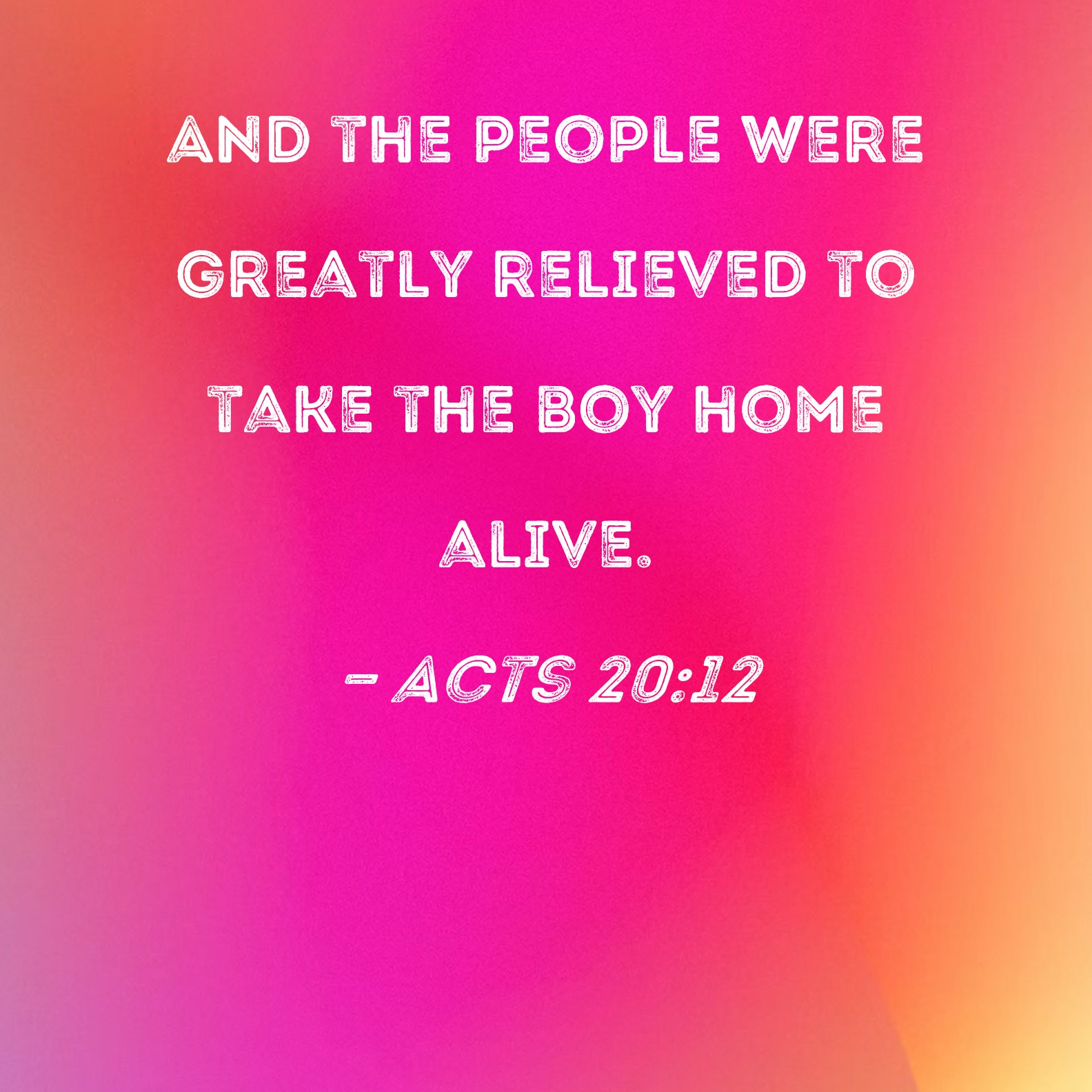 Acts 20:12 And the people were greatly relieved to take the boy home alive.