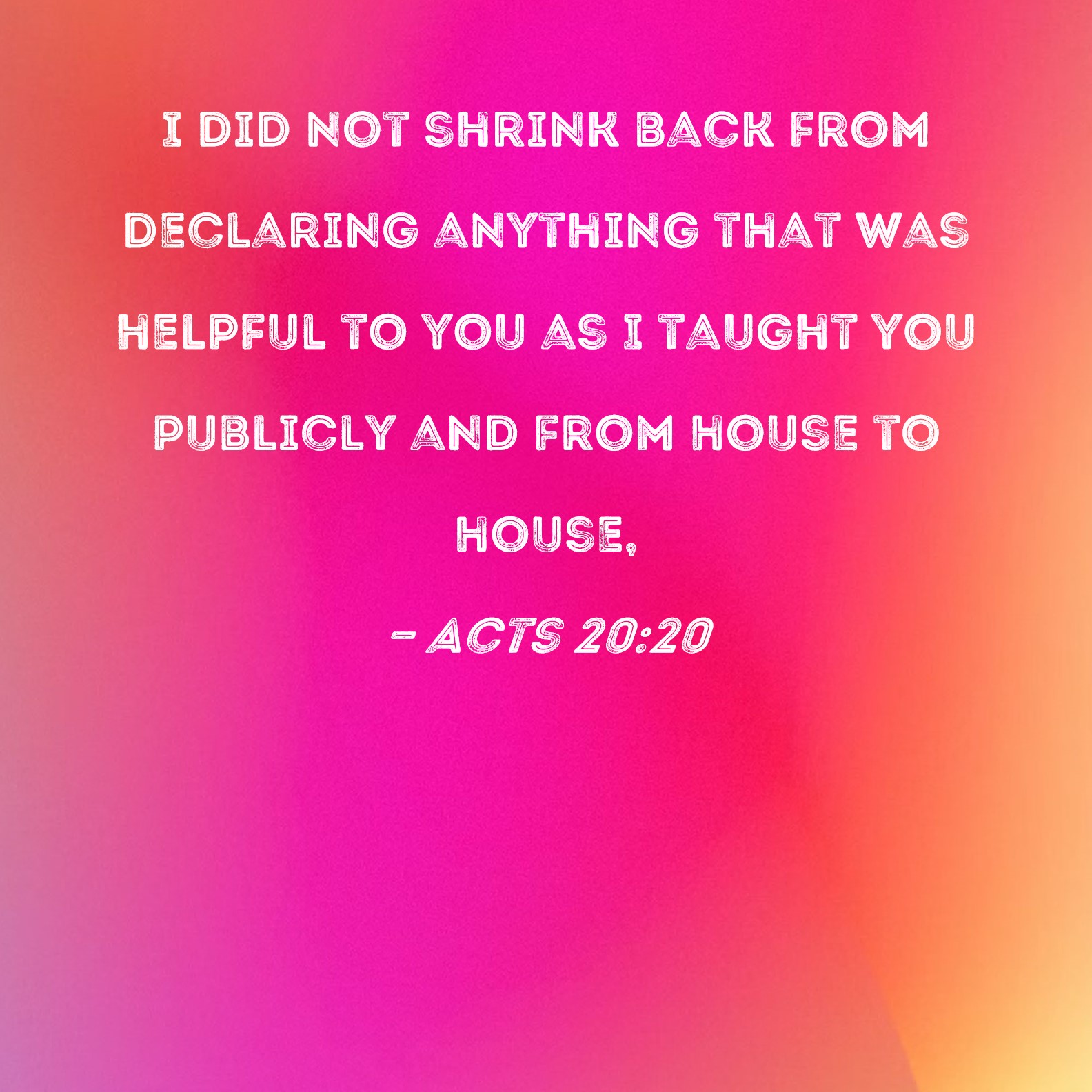 Acts 20:20 I did not shrink back from declaring anything that was helpful to you as I taught you publicly and from house to house,