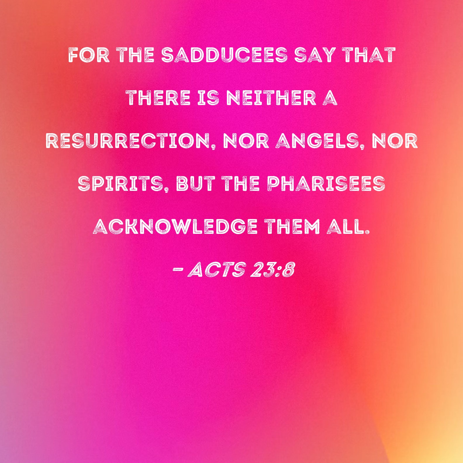 Acts 23:8 For the Sadducees say that there is neither a resurrection, nor angels, nor spirits, but the Pharisees acknowledge them all.
