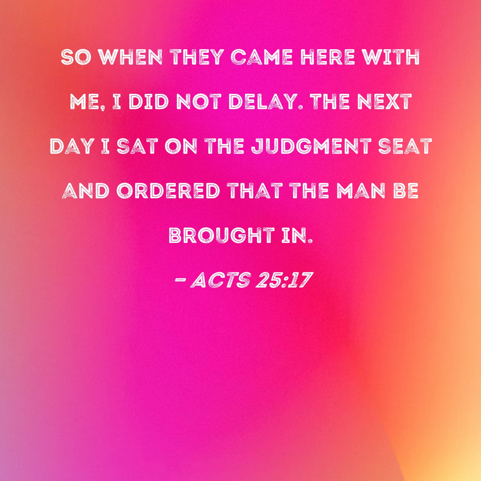 Acts 25:17 So when they came here with me, I did not delay. The next day I sat on the judgment seat and ordered that the man be brought in.