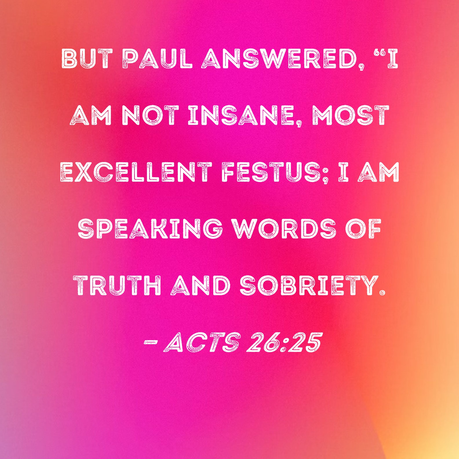 Acts 26:25 But Paul answered, "I am not insane, most excellent Festus; I am speaking words of truth and sobriety.
