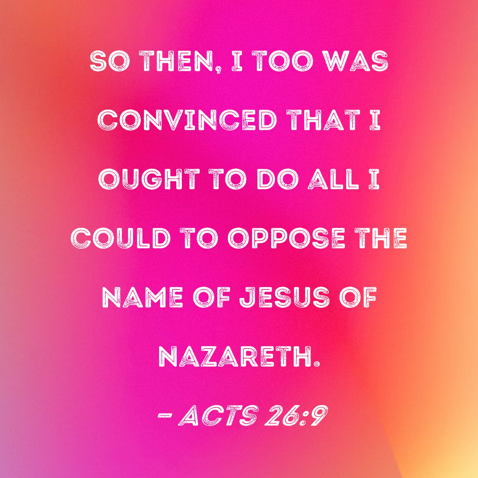 Acts 26:9 So then, I too was convinced that I ought to do all I could to oppose the name of Jesus of Nazareth.