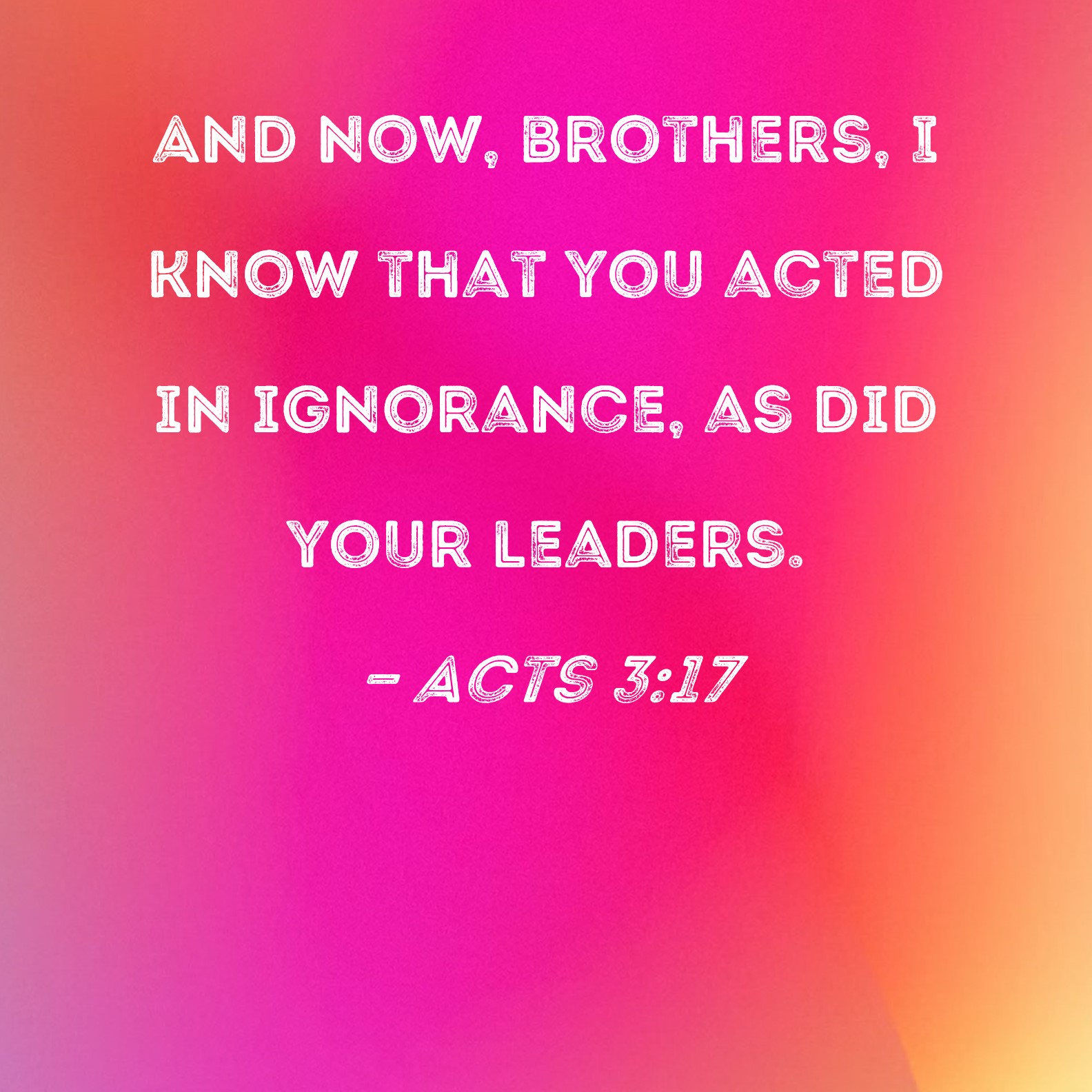 Acts 3:17 And now, brothers, I know that you acted in ignorance, as did your leaders.