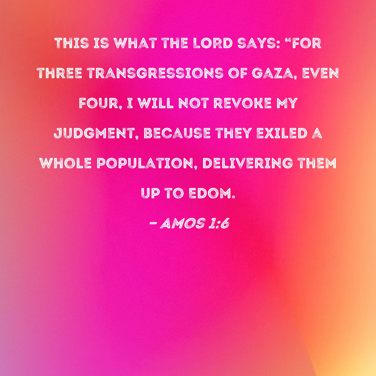 Amos 1:6 This is what the LORD says: "For three transgressions of Gaza, even four, I will not revoke My judgment, because they exiled a whole population, delivering them up to Edom.