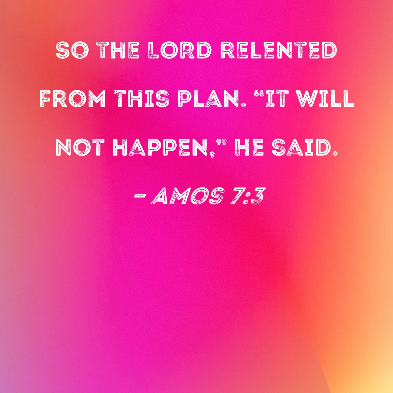 Amos 7:3 So the LORD relented from this plan. "It will not happen," He said.