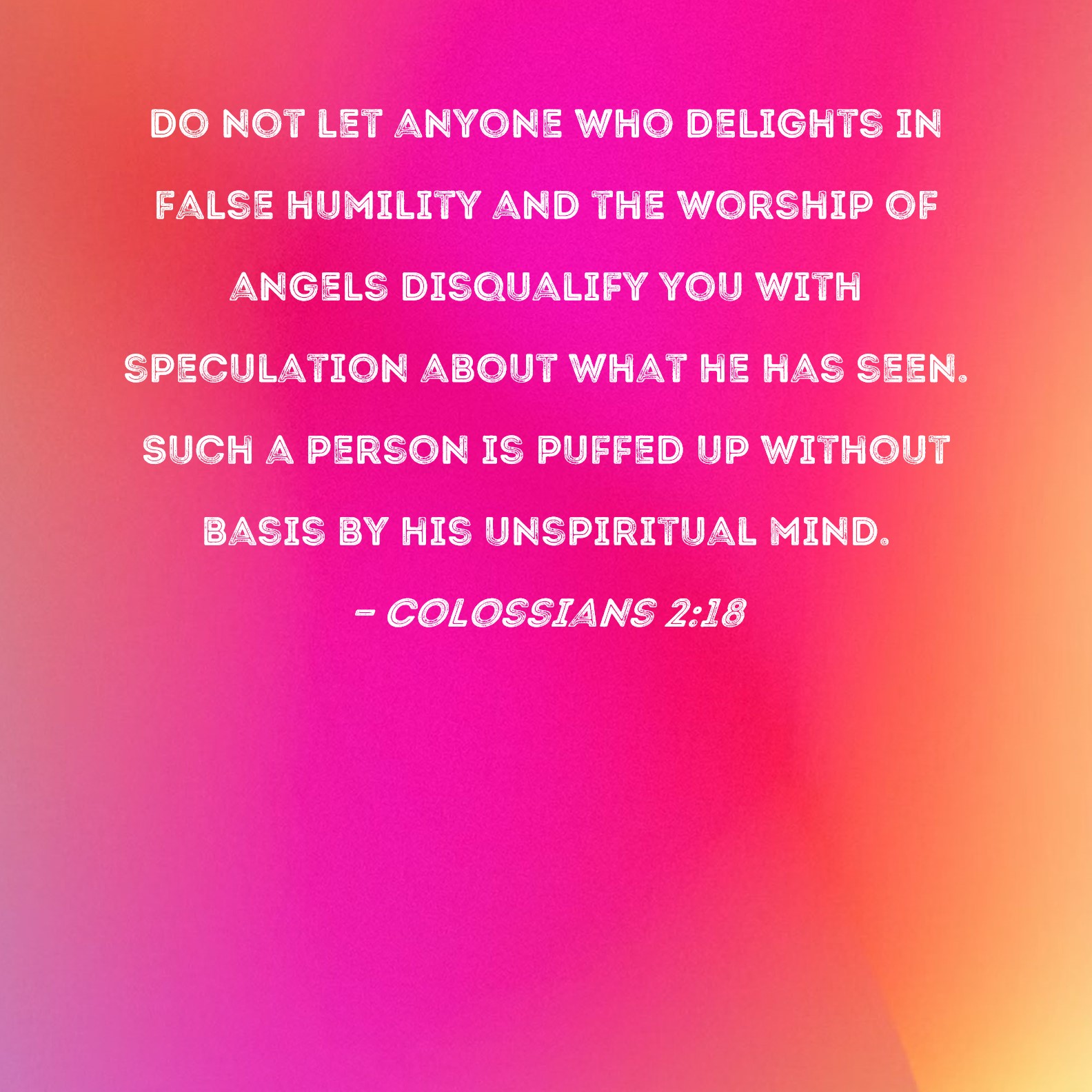 Colossians 2:18 Do not let anyone who delights in false humility and the worship of angels disqualify you with speculation about what he has seen. Such a person is puffed up without basis by his unspiritual mind.