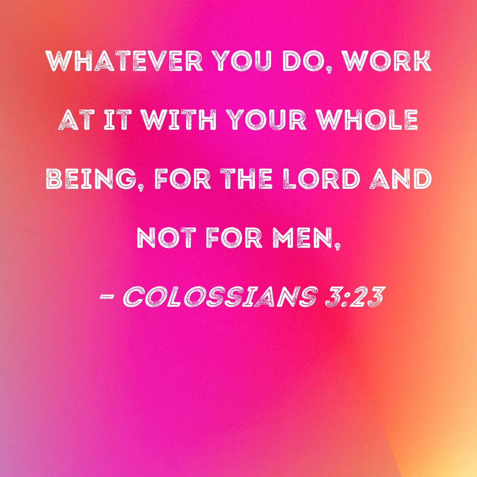 Colossians 3:23 Whatever you do, work at it with your whole being, for the Lord and not for men,
