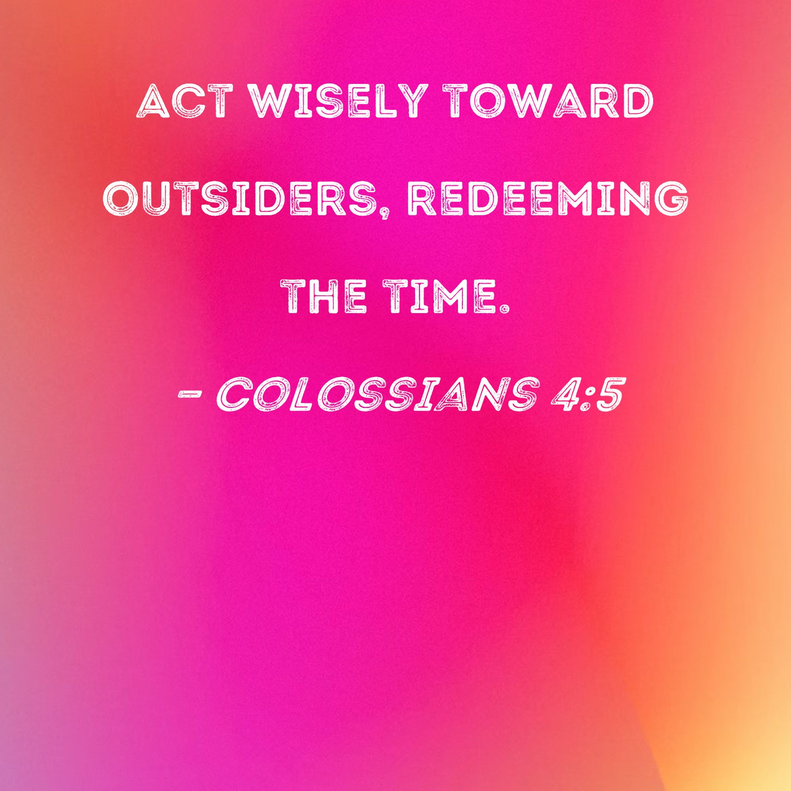 Colossians 4:5 Act wisely toward outsiders, redeeming the time.