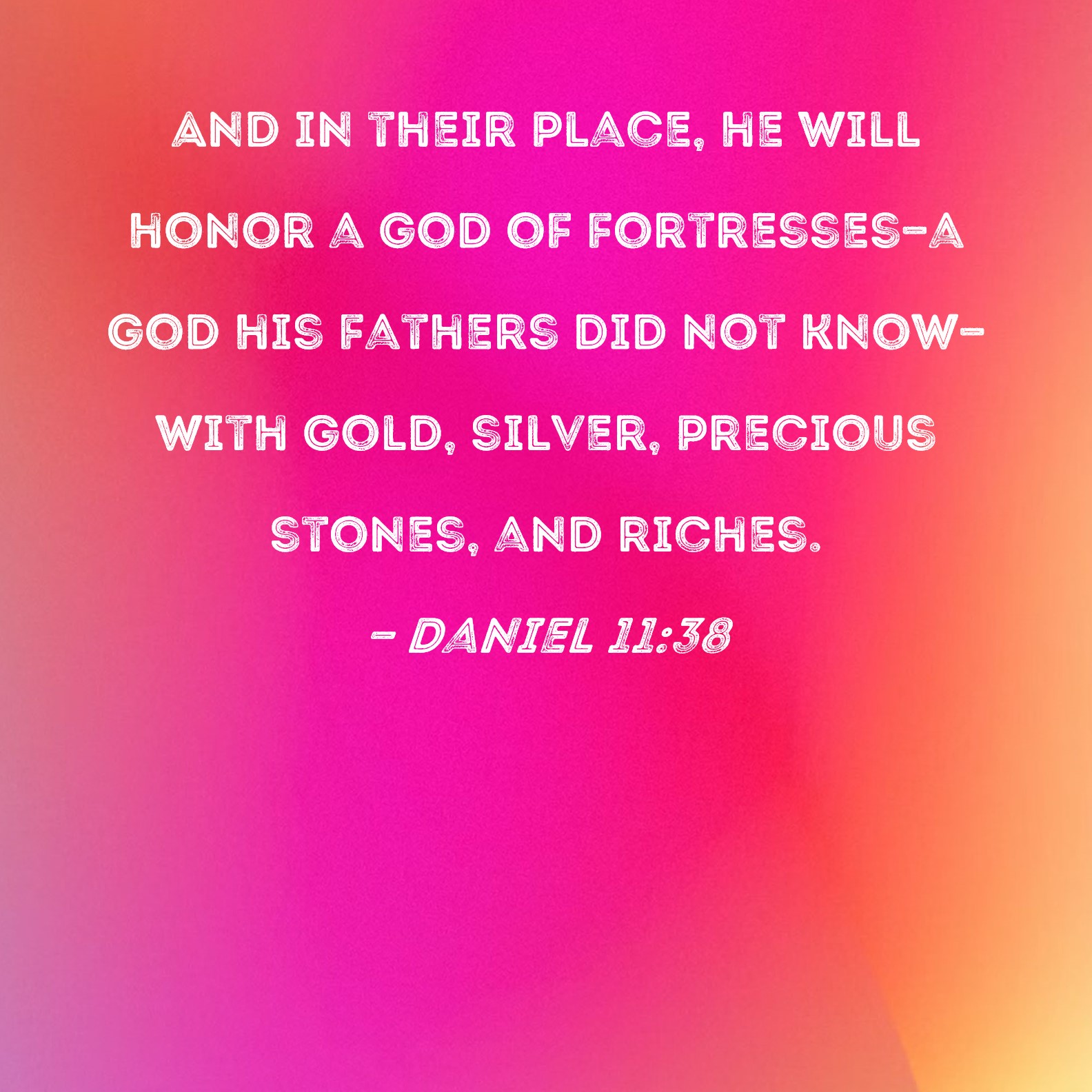 Daniel 11:38 And in their place, he will honor a god of fortresses--a god his fathers did not know--with gold, silver, precious stones, and riches.