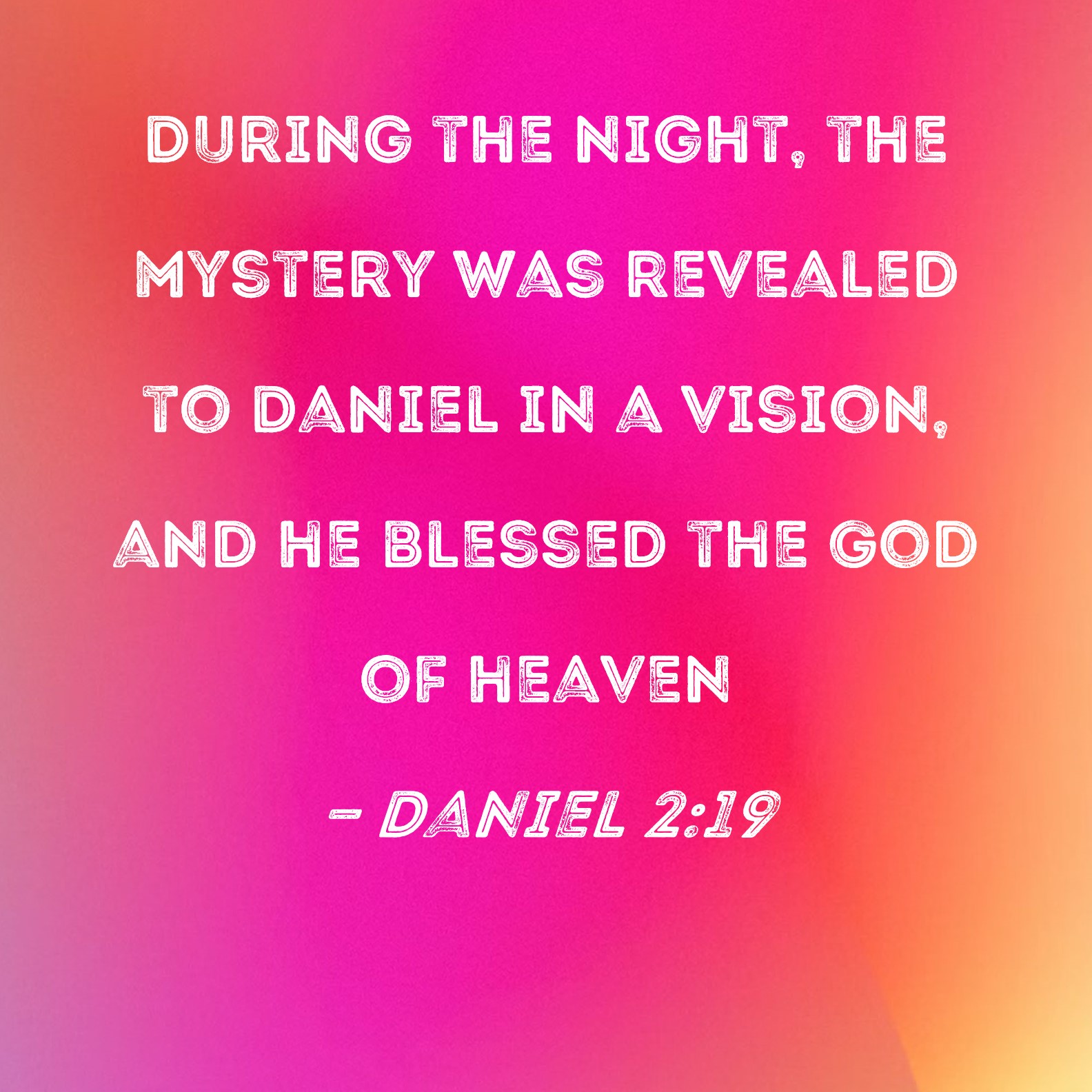Daniel 2:19 During the night, the mystery was revealed to Daniel in a vision, and he blessed the God of heaven