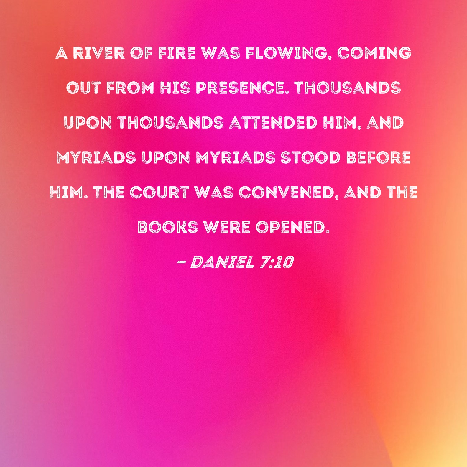 Daniel 7:10 A river of fire was flowing, coming out from His presence. Thousands upon thousands attended Him, and myriads upon myriads stood before Him. The court was convened, and the books were opened.