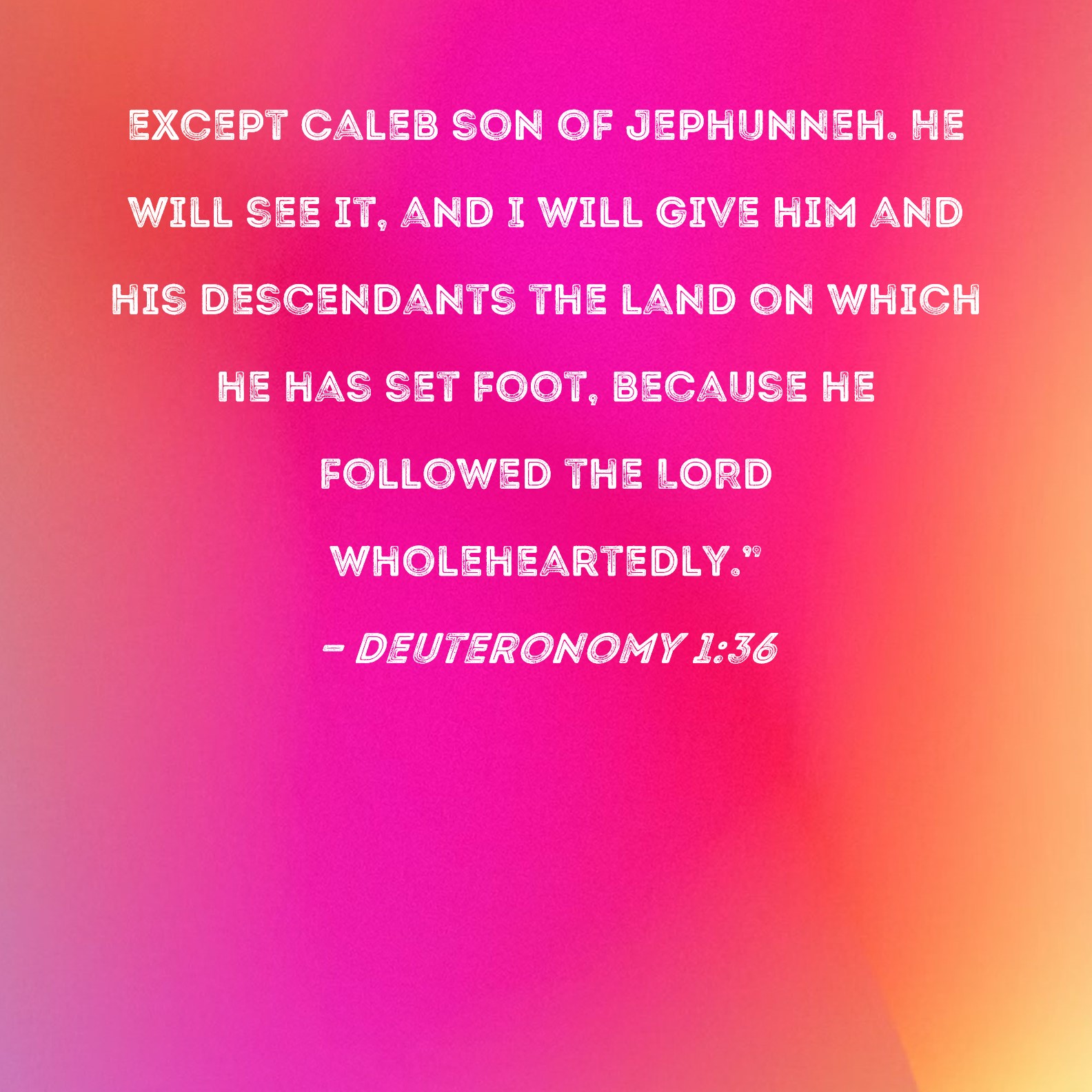 Deuteronomy 1:36 except Caleb son of Jephunneh. He will see it, and I will give him and his descendants the land on which he has set foot, because he followed the LORD wholeheartedly."