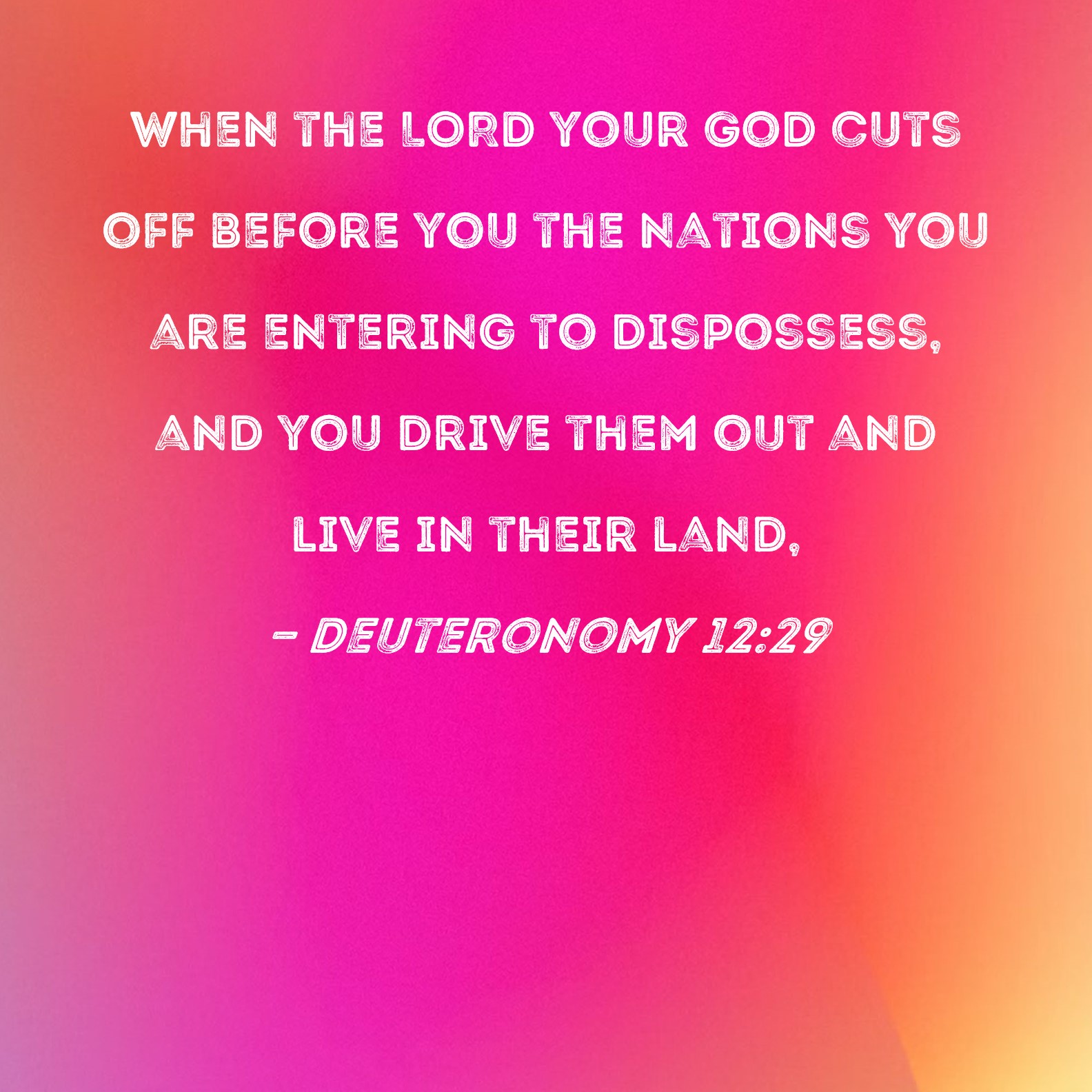Deuteronomy 12:29 When the LORD your God cuts off before you the nations you are entering to dispossess, and you drive them out and live in their land,