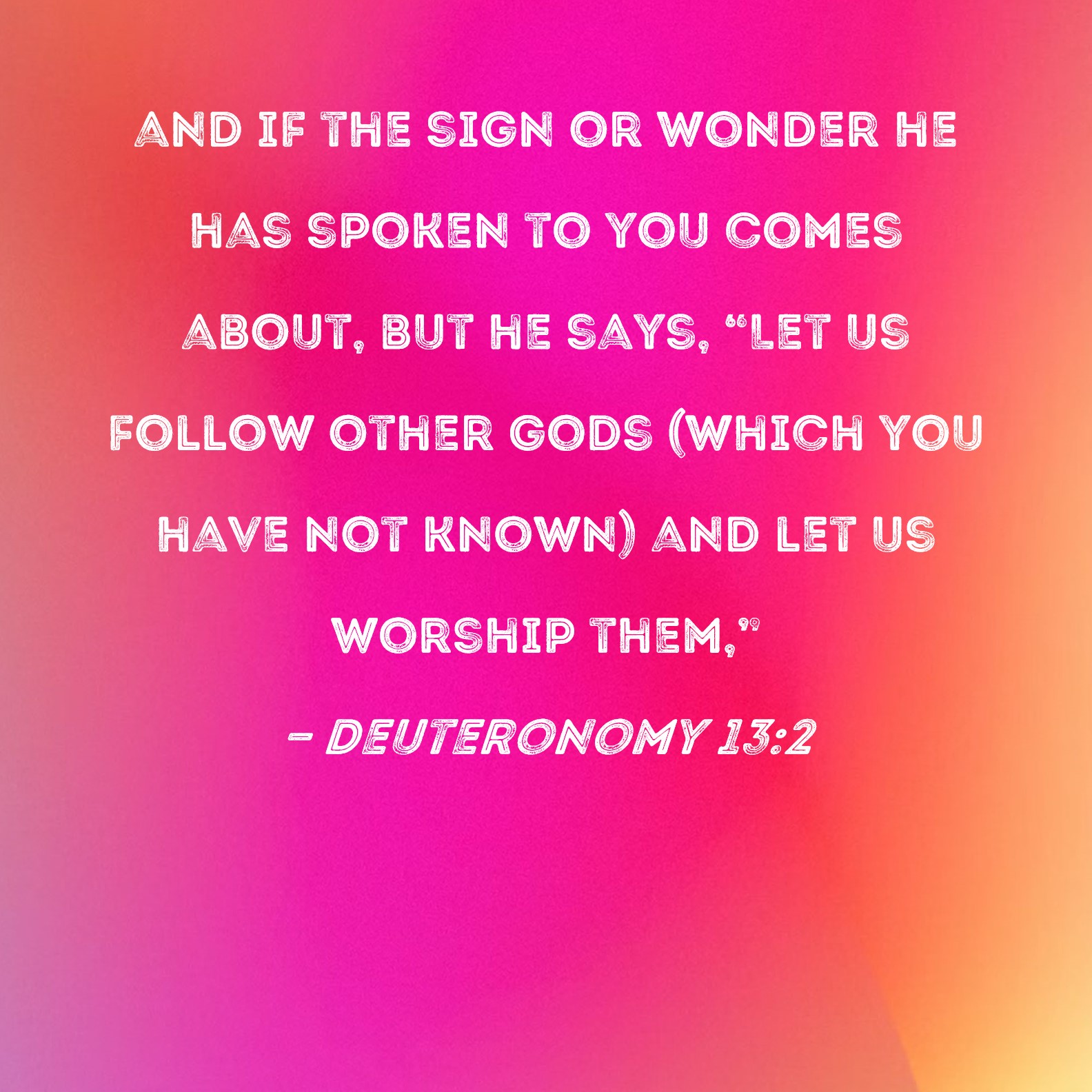 Deuteronomy 13:2 and if the sign or wonder he has spoken to you comes about, but he says, "Let us follow other gods (which you have not known) and let us worship them,"