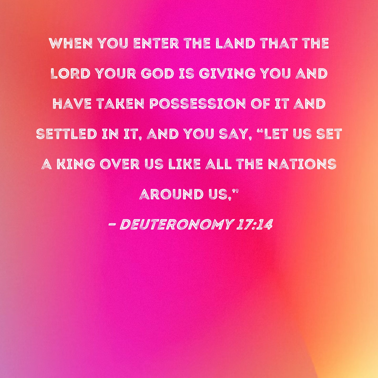 Deuteronomy 17:14 When you enter the land that the LORD your God is giving you and have taken possession of it and settled in it, and you say, "Let us set a king over us like all the nations around us,"