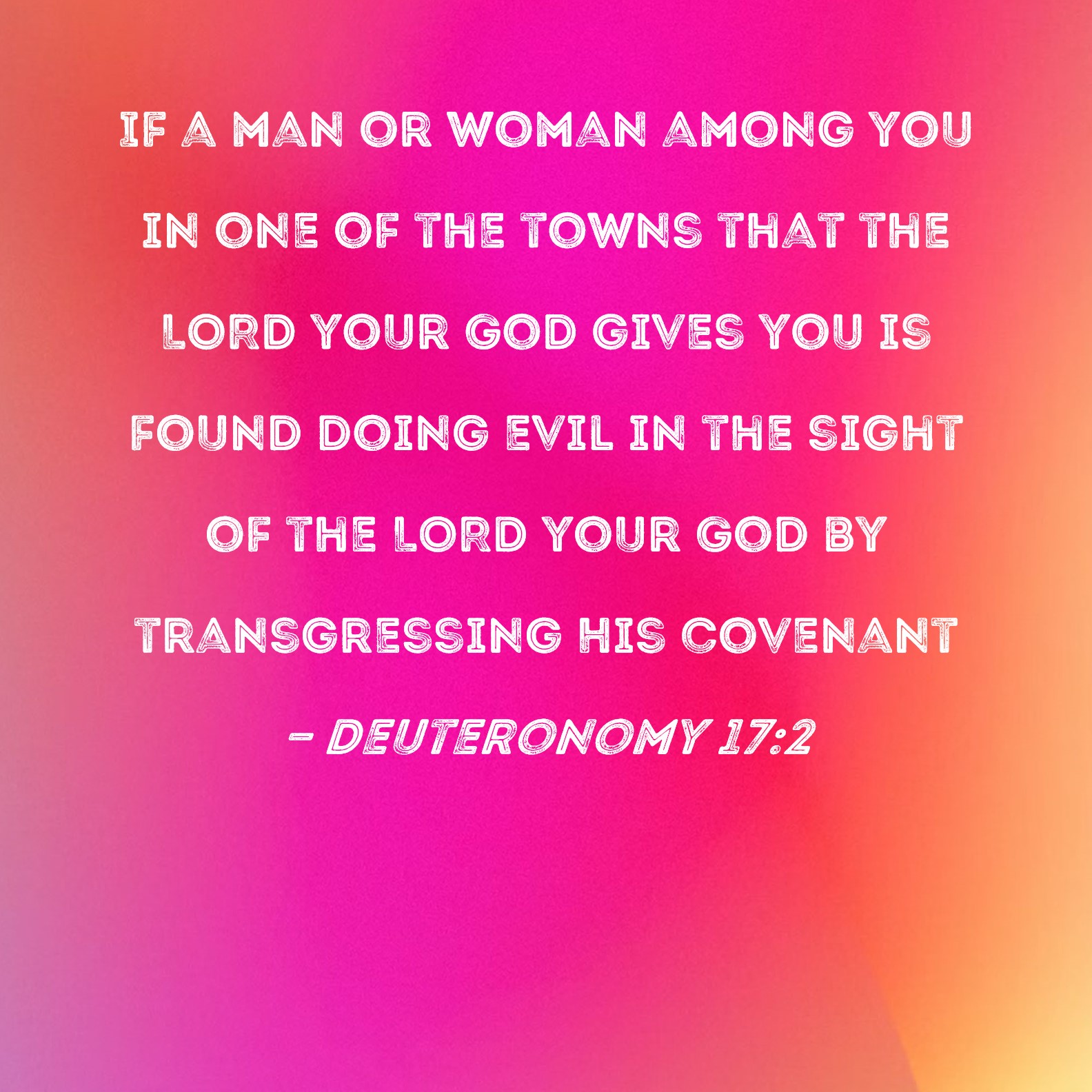 Deuteronomy 17:2 If a man or woman among you in one of the towns that the LORD your God gives you is found doing evil in the sight of the LORD your God by transgressing His covenant