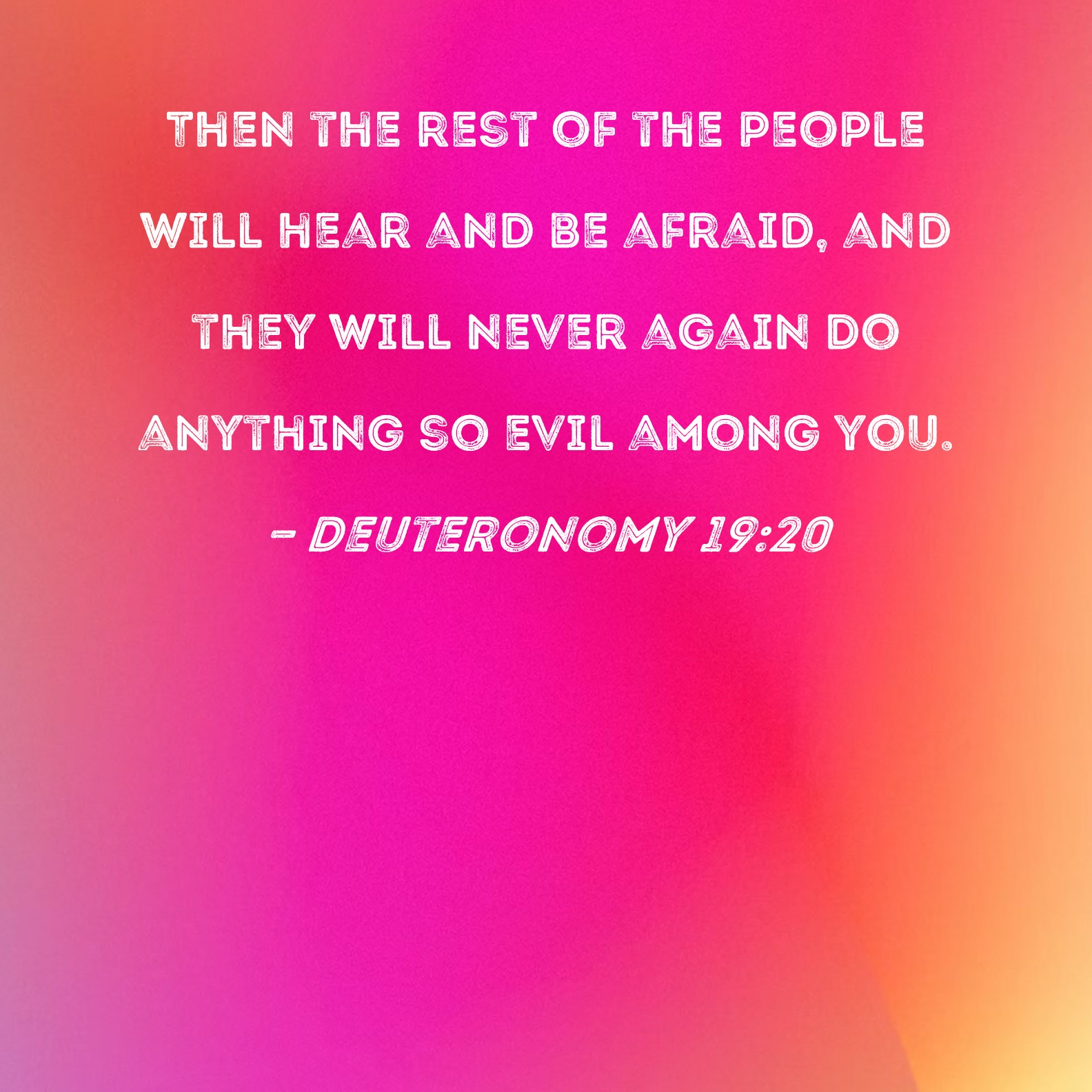 Deuteronomy 19:20 Then the rest of the people will hear and be afraid, and they will never again do anything so evil among you.