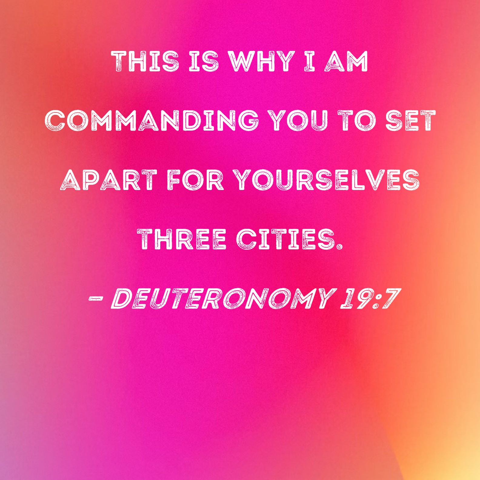 Deuteronomy 19:7 This is why I am commanding you to set apart for yourselves three cities.