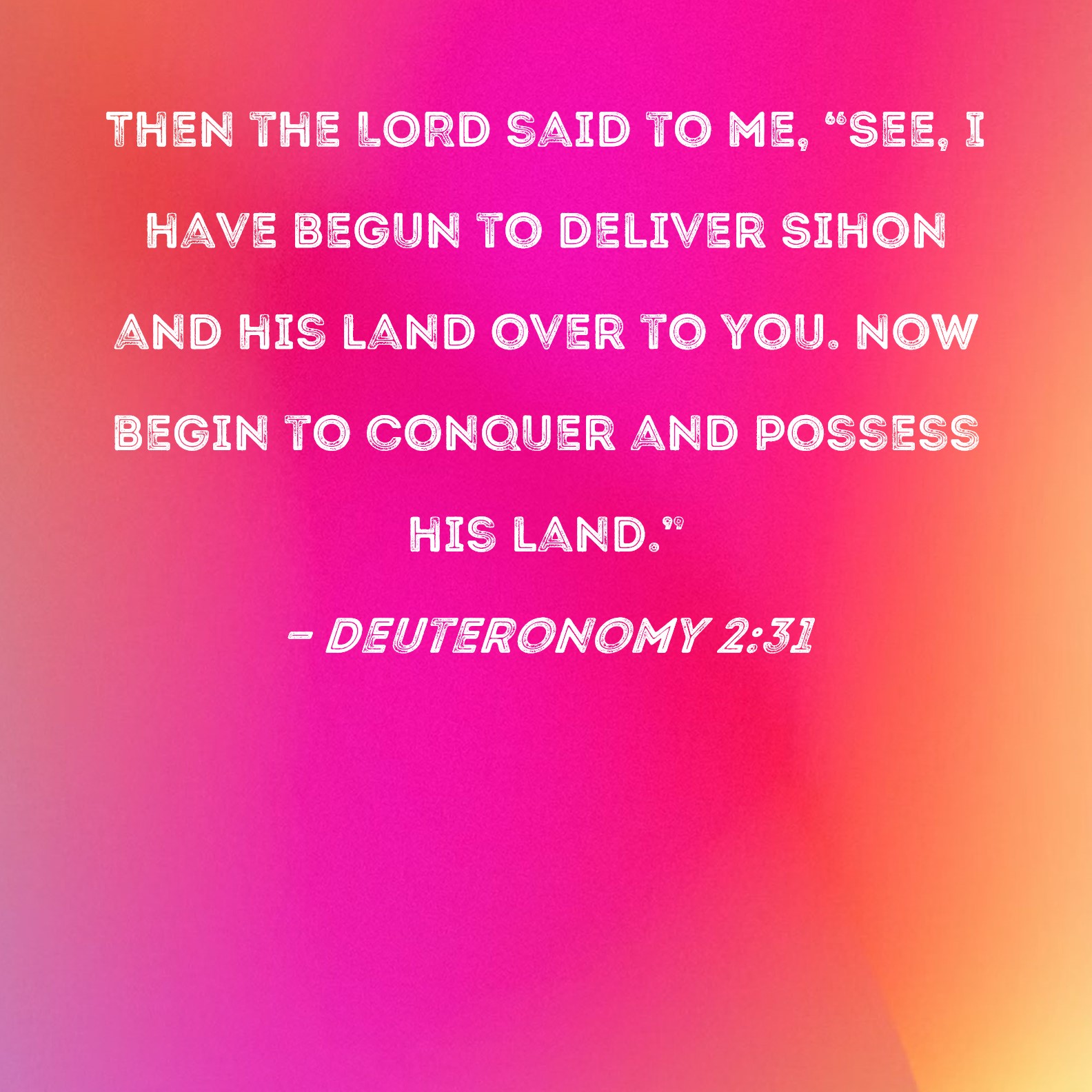 Deuteronomy 2:31 Then the LORD said to me, "See, I have begun to deliver Sihon and his land over to you. Now begin to conquer and possess his land."