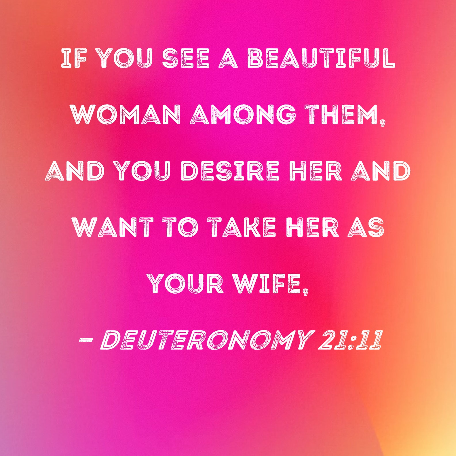 Deuteronomy 21:11 if you see a beautiful woman among them, and you desire her and want to take her as your wife,