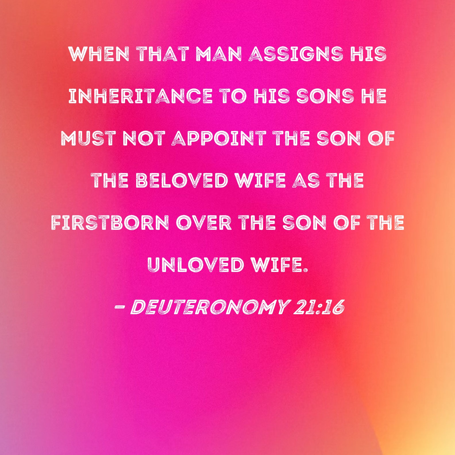 Deuteronomy 21:16 when that man assigns his inheritance to his sons he must not appoint the son of the beloved wife as the firstborn over the son of the unloved wife.