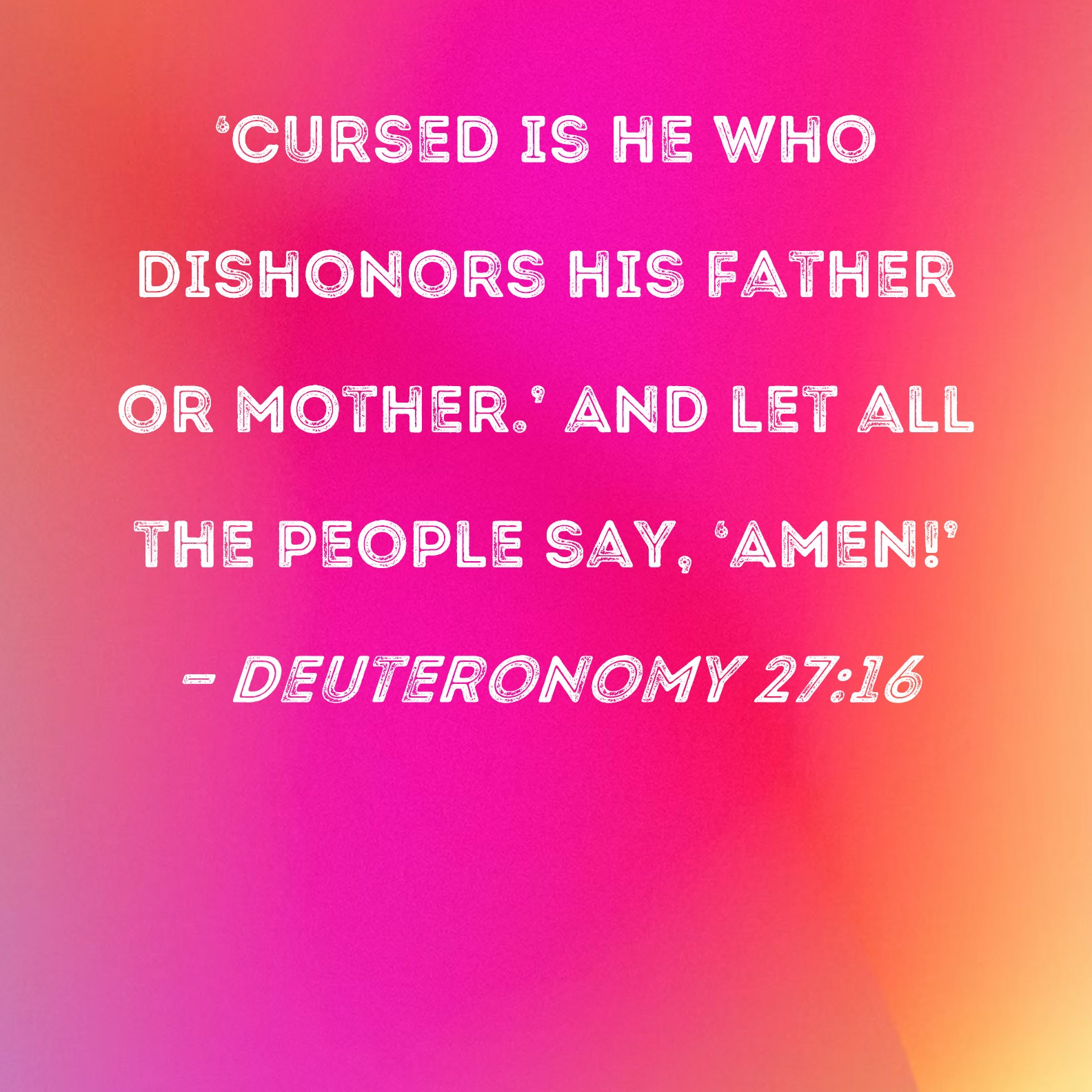 Deuteronomy 27:16 Cursed is he who dishonors his father or mother.' And let all the people say, 'Amen!'