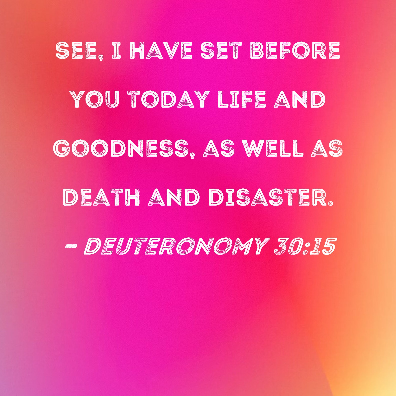 Deuteronomy 30:15 See, I have set before you today life and goodness, as well as death and disaster.