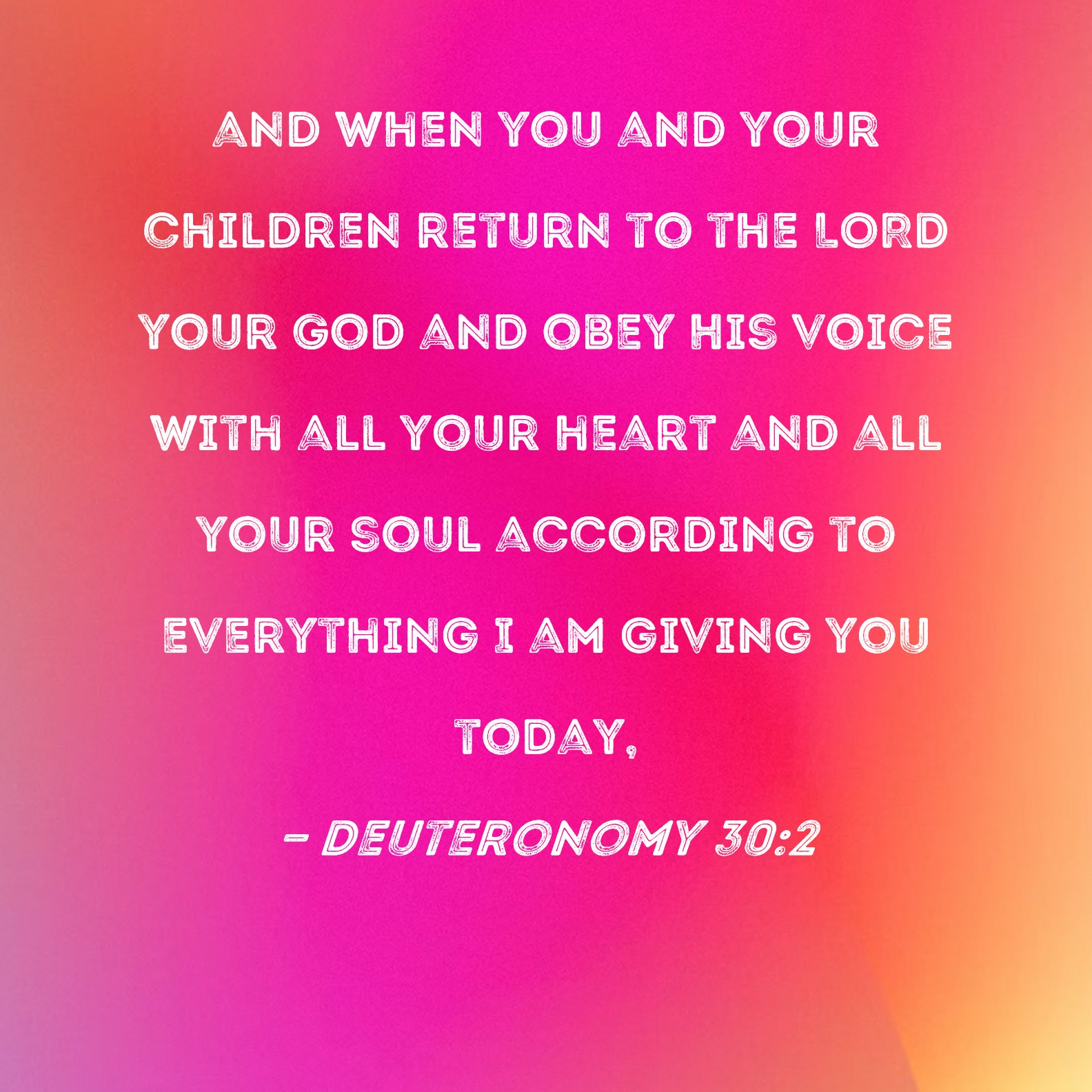 Deuteronomy 30:2 and when you and your children return to the LORD your God and obey His voice with all your heart and all your soul according to everything I am giving you today,