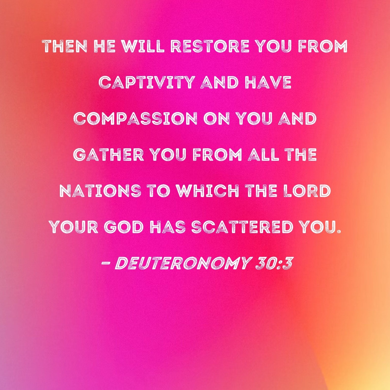Deuteronomy 30:3 then He will restore you from captivity and have compassion on you and gather you from all the nations to which the LORD your God has scattered you.