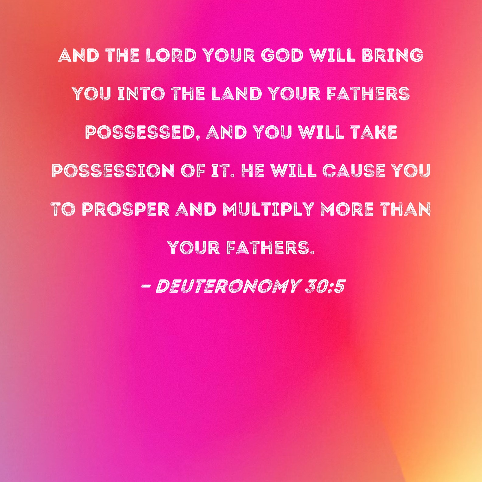 Deuteronomy 30:5 And the LORD your God will bring you into the land your fathers possessed, and you will take possession of it. He will cause you to prosper and multiply more than your fathers.