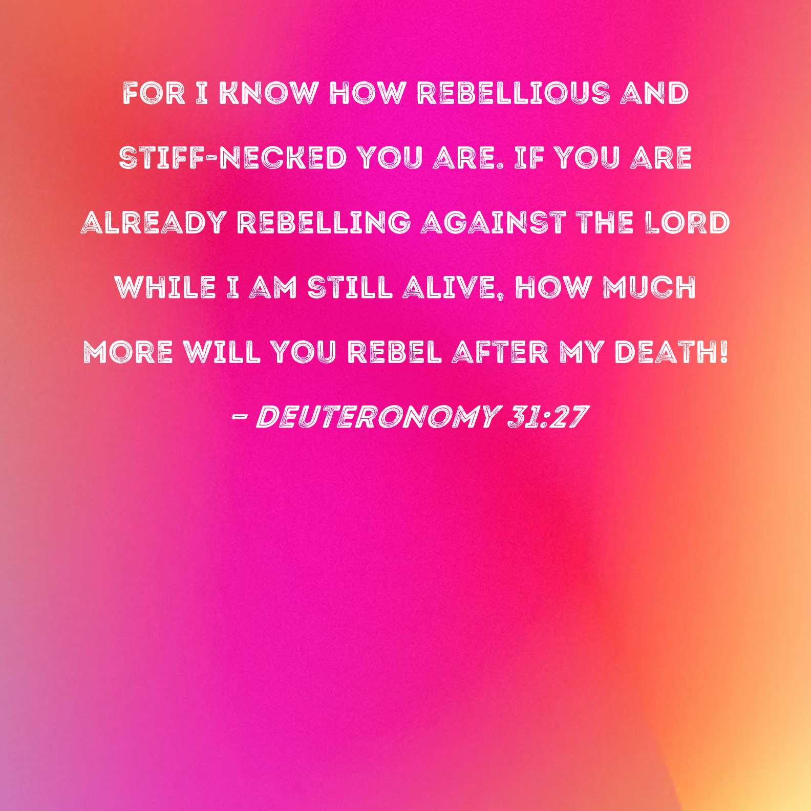 Deuteronomy 31:27 For I know how rebellious and stiff-necked you are. If you are already rebelling against the LORD while I am still alive, how much more will you rebel after my death!