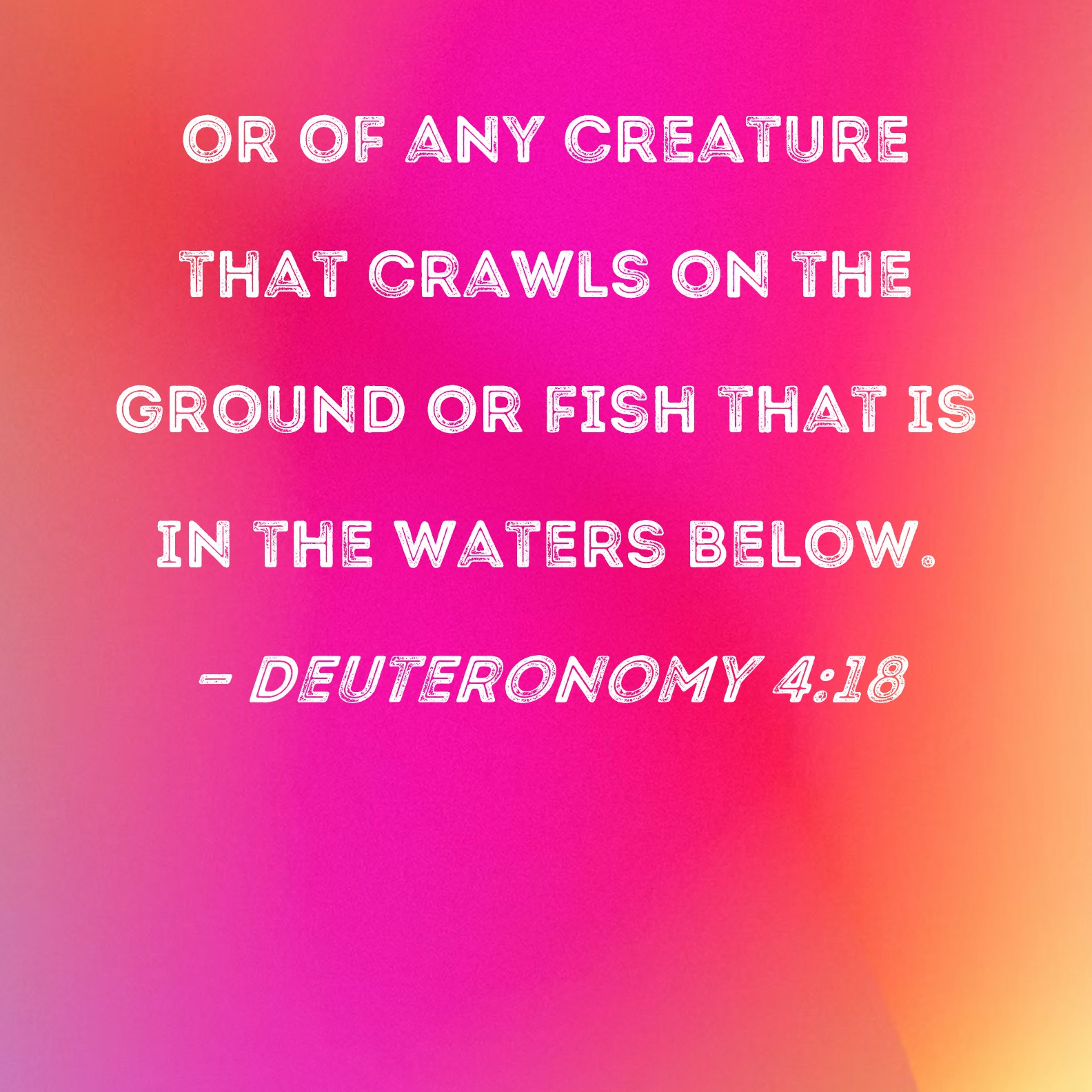 Deuteronomy 4:18 or of any creature that crawls on the ground or fish that is in the waters below.