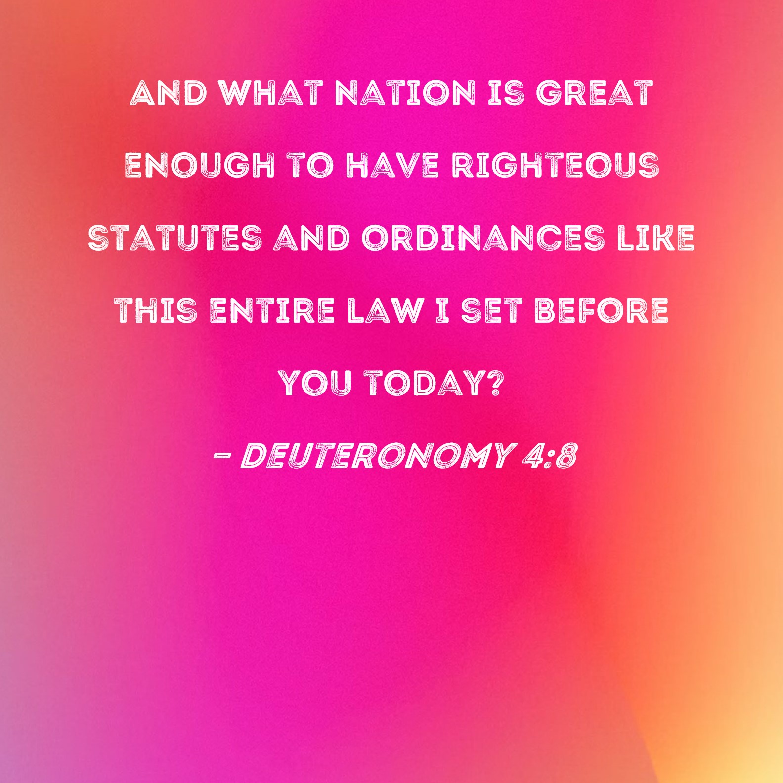 Deuteronomy 4:8 And what nation is great enough to have righteous statutes and ordinances like this entire law I set before you today?