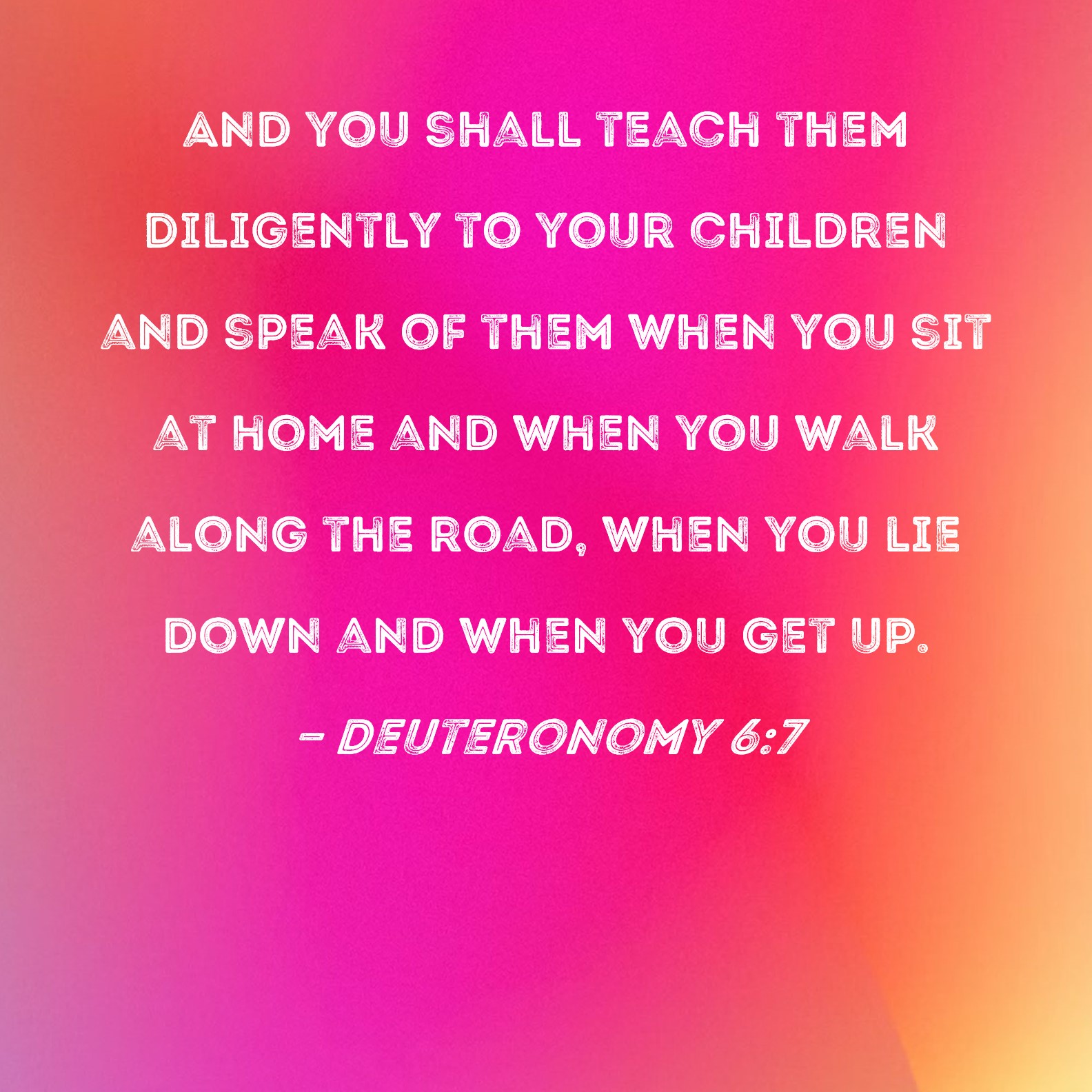 Deuteronomy 6:7 And you shall teach them diligently to your children and speak of them when you sit at home and when you walk along the road, when you lie down and when you get up.