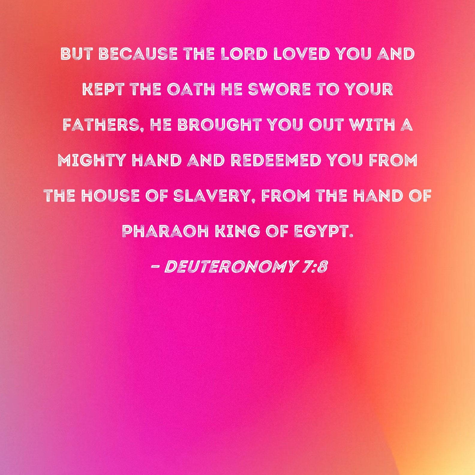Deuteronomy 7:8 But because the LORD loved you and kept the oath He swore to your fathers, He brought you out with a mighty hand and redeemed you from the house of slavery, from the hand of Pharaoh king of Egypt.