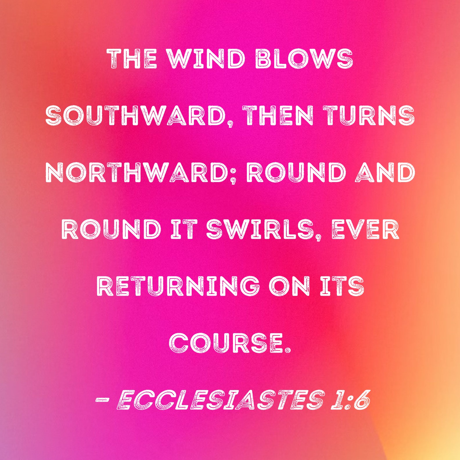 Ecclesiastes 1:6 The wind blows southward, then turns northward; round and round it swirls, ever returning on its course.